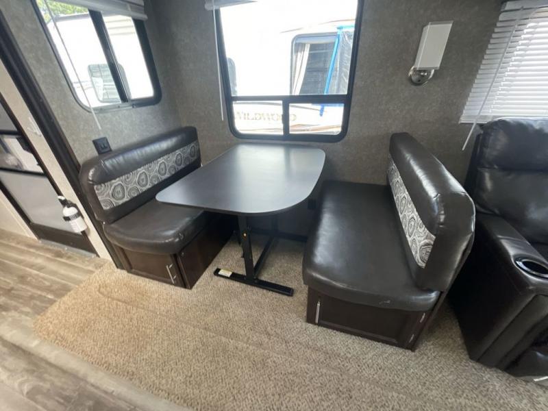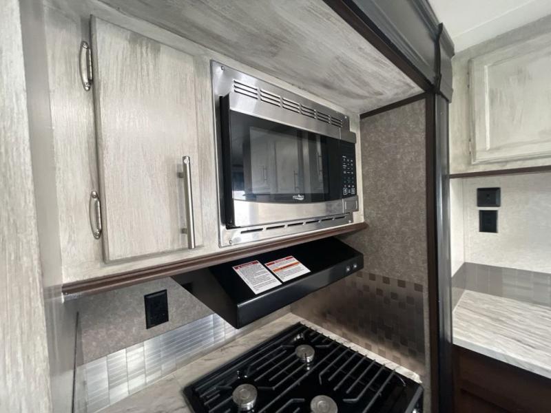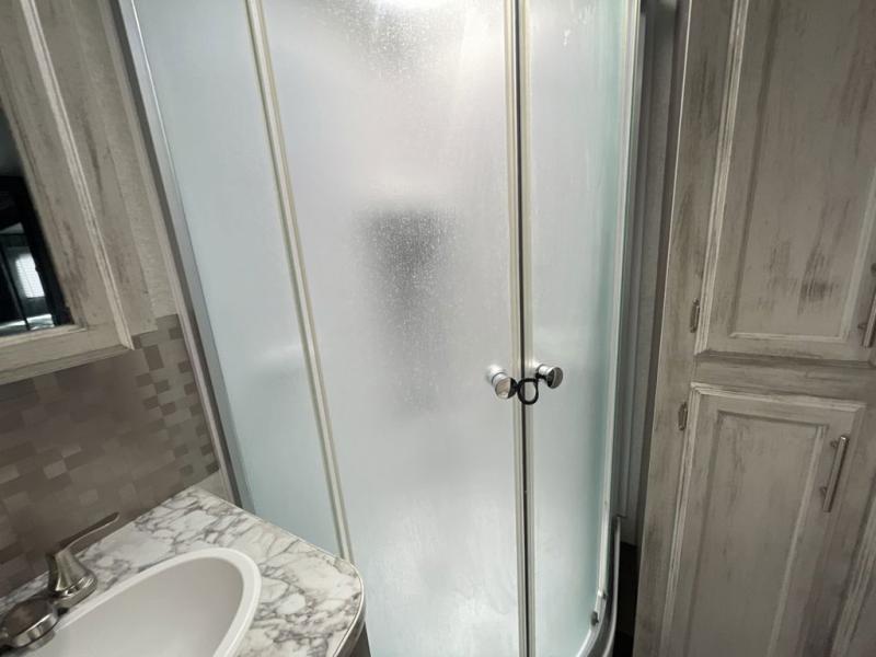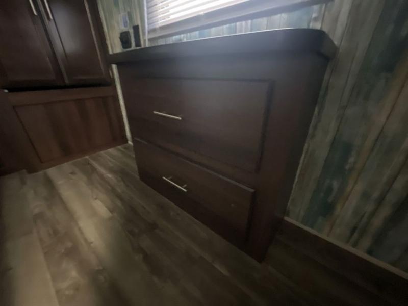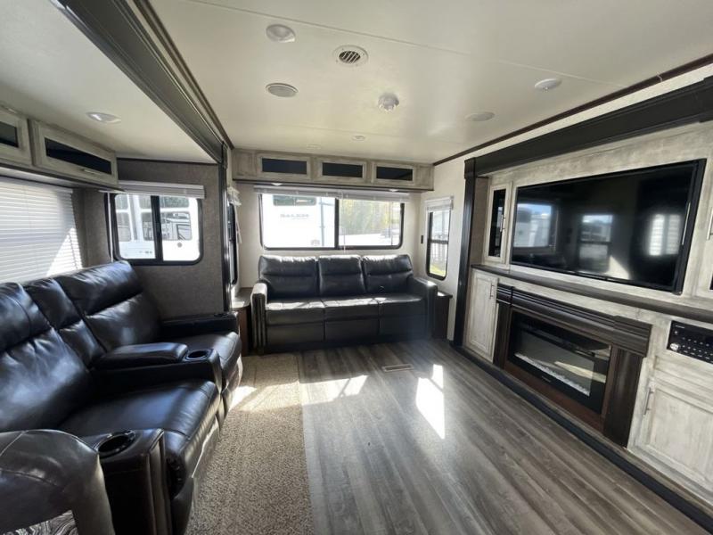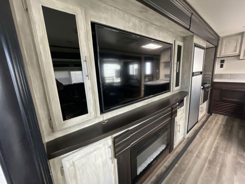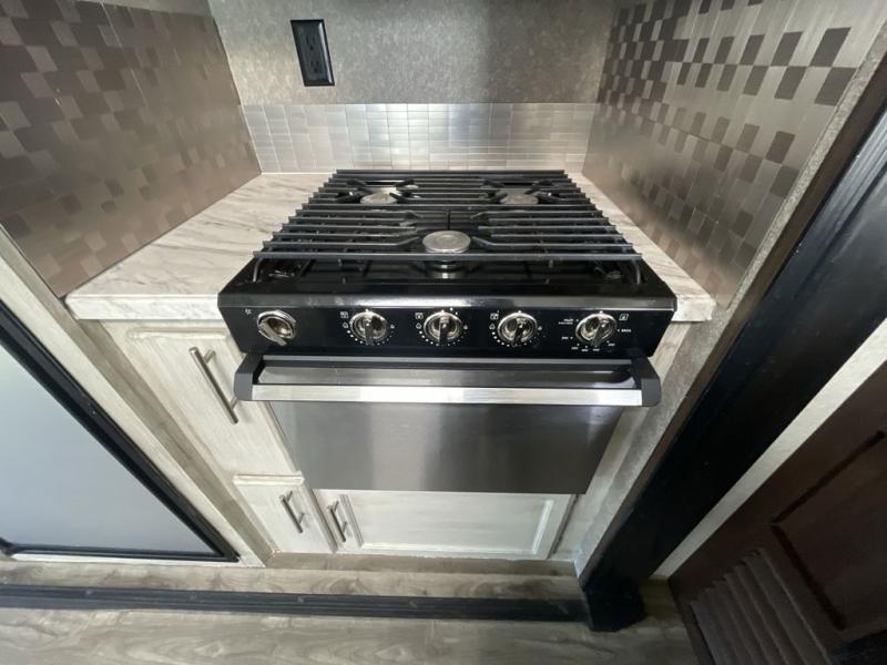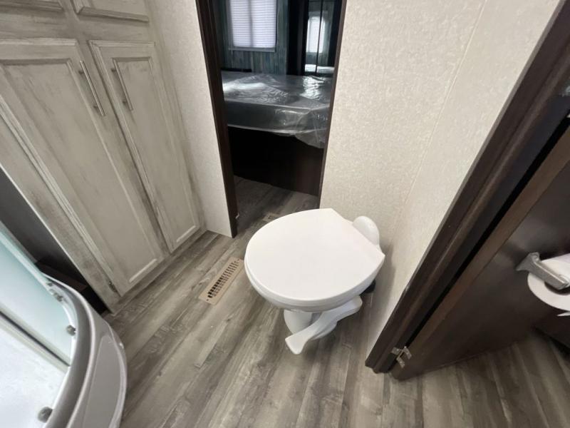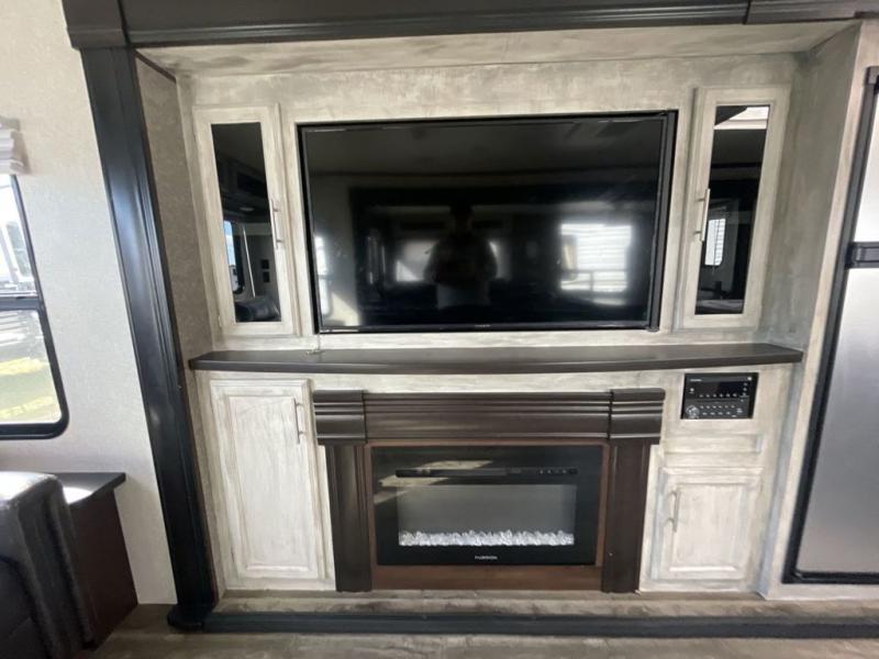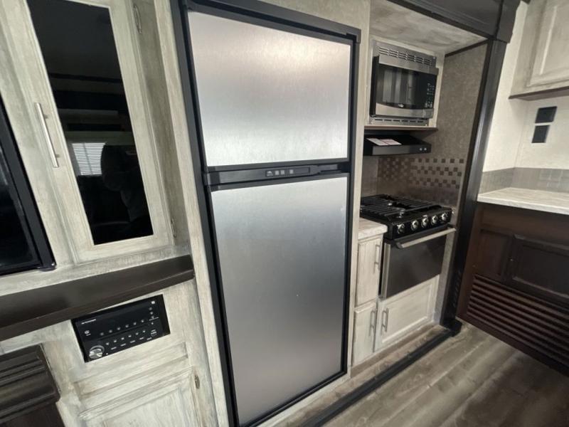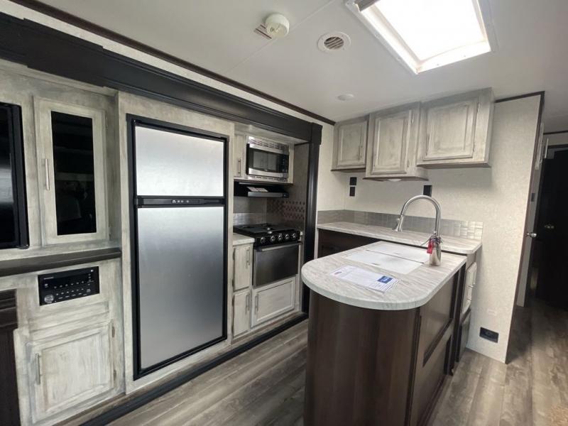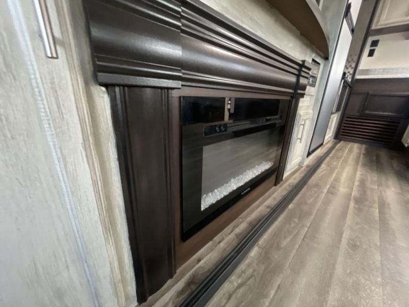 Can you picture yourself relaxing in the rear living area in this travel trailer? This model is perfect for a couple that enjoys plenty of space to invite other camper friends over or even the grandkids for a weekend away. The front master bedroom features a wardrobe, and a second entry into the bathroom. The main living and kitchen area includes dual slide outs for more floor space, theater seats, and additional furniture that will provide extra sleeping space for the overnight guests. You will love watching the big game or a show while staying warm from the fireplace. Stop picturing yourself, and start camping in this Jay Flight!