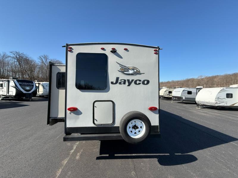 With any Jayco Jay Flight travel trailer you will get solid construction from the fully integrated A-frame, the l-class cambered structural steel l-beams, and the Magnum Truss roof system with seamless DiFlex II material. The 30" x 72" main entrance door, the keyed alike entrance and baggage doors, the exclusive JaySmart lighting system, and the Goodyear tires offer safety and security you will want every where you travel and setup. It's time to find out what else the Jay Flight has to offer that you can't travel without. Choose your favorite model today!