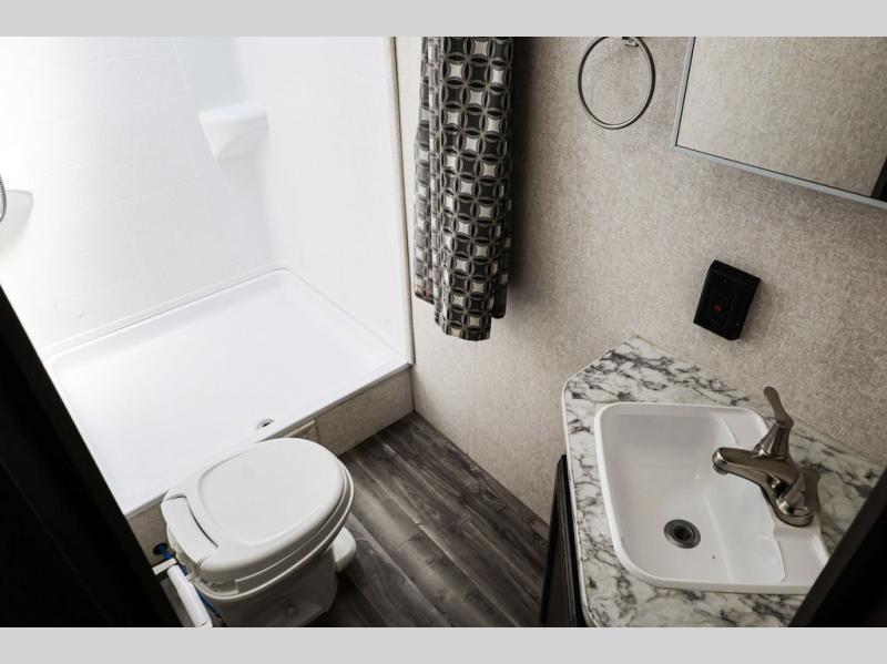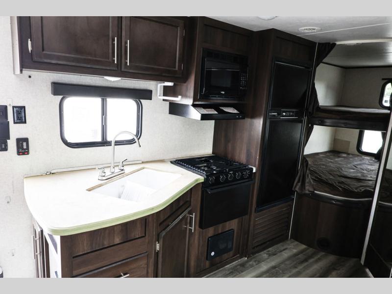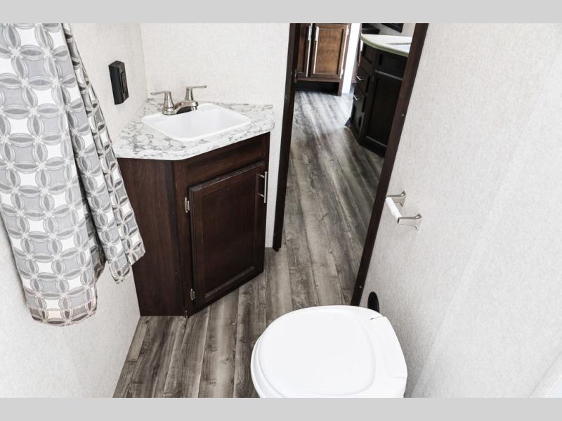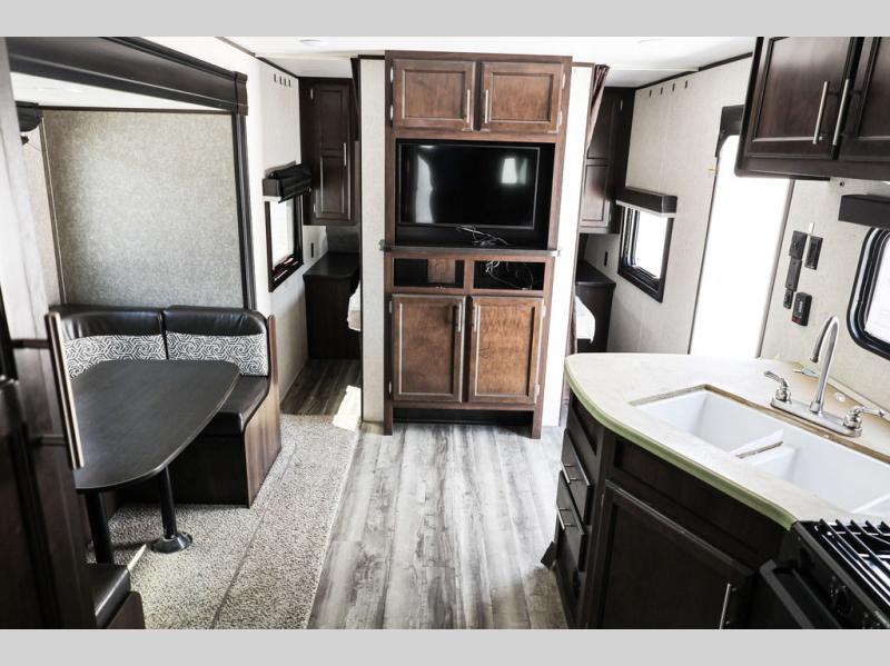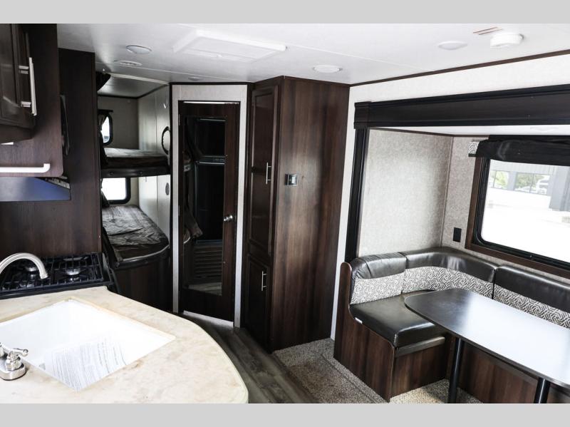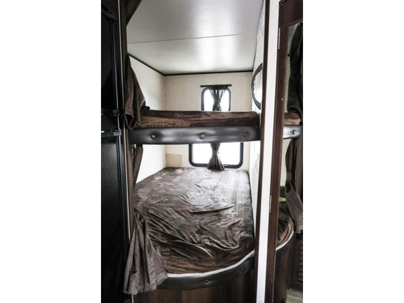 It's time to imagine you sleeping on a queen size Simmons mattress in the semi-private front bedroom while the kids sleep on the double size bunk beds on the opposite side of the trailer. When morning comes you can gather around the U-shaped dinette for breakfast. This Jay Flight SLX 8 242BHS even gives the chef a choice to cook outside on the outdoor kitchen and eat under the 18' power awning. You will also have full indoor kitchen and a rear corner bath with a bathroom skylight for natural lighting!