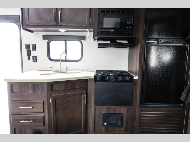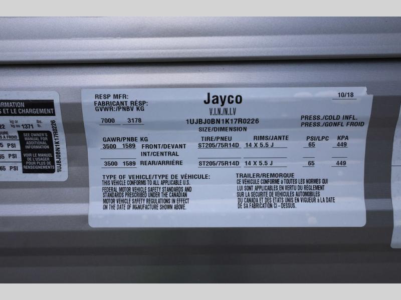 With any Jayco Jay Flight SLX 8 you will appreciate the 8-foot wide body, the reliability of the Goodyear tires made with galvanized steel and impact-resistant wheel wells, and the handy Keyed-Alike entrance, plus baggage doors for protection on the road. You will also appreciate the spacious exterior storage for you to easily access your camping gear. Inside you will find modern kitchen appliances including a three burner range with a 9,000 BTU Super Burner and piezo igniter, a Norcold refrigerator, and a microwave oven. In every model, there is a queen Simmons mattress to re-charge for your next adventurous day, and there is also a bathroom skylight to let in some natural lighting. Come see which model fits your lifestyle the best!