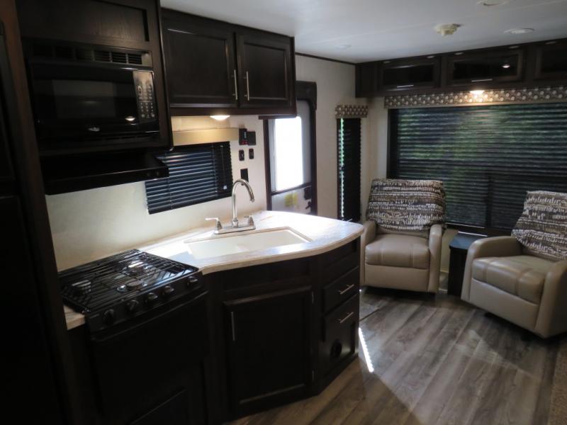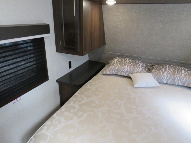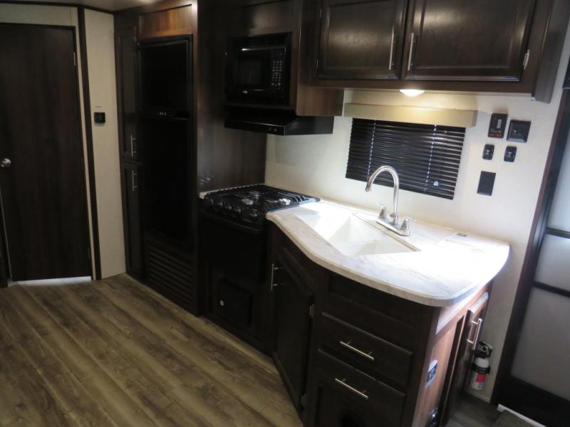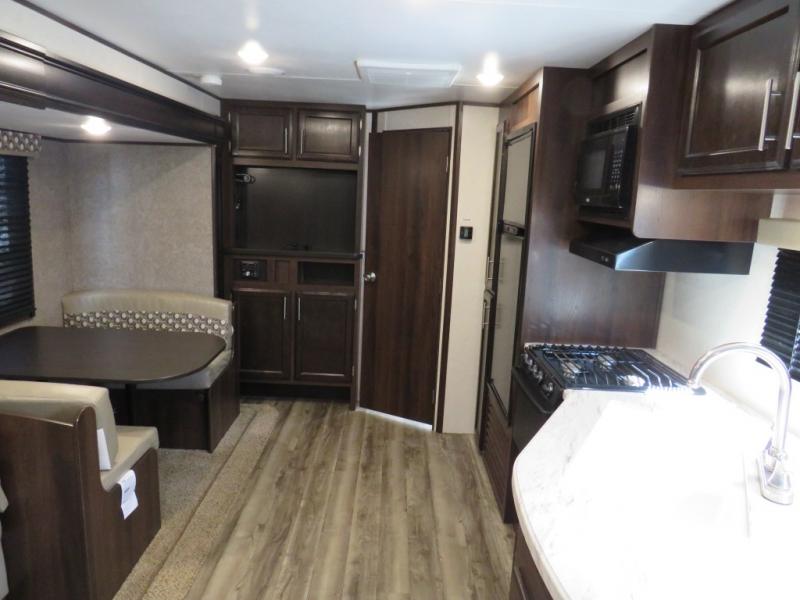 If you enjoy being in the great outdoors and prefer sleeping in comfort then this Jay Flight SLX 8 265RLS travel trailer might be the one. The private front bedroom offers a queen size Simmons mattress for the owners and a second entry into the trailer. You can relax on one of the two lounge chairs while your friends are on the additional furniture. If you decide to invite overnight guests, the J-steel jackknife sofa and booth dinette provide extra sleeping space. You will surely appreciate the convenience of the walk-through bathroom, and floor space of the single slide out. It's time to check out this model to find even more features you will love.