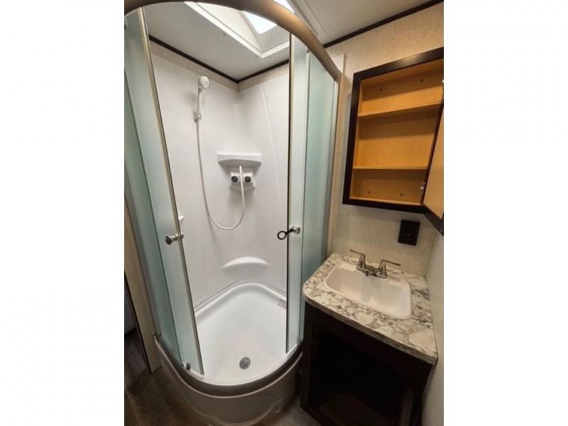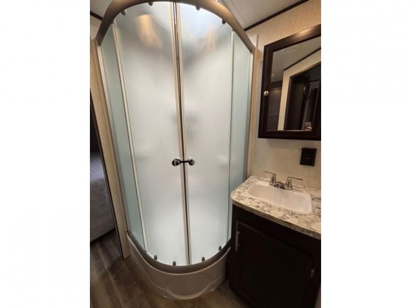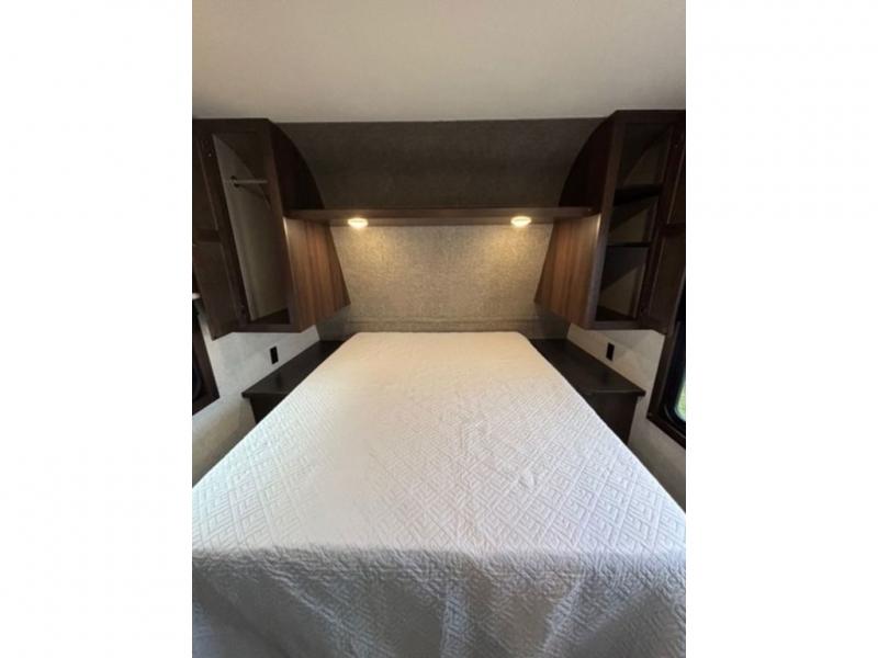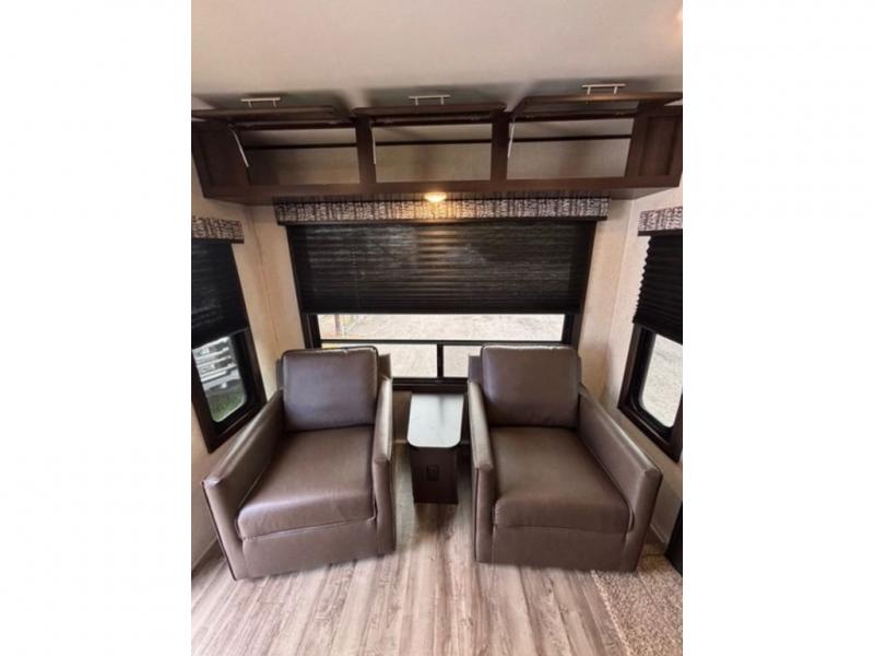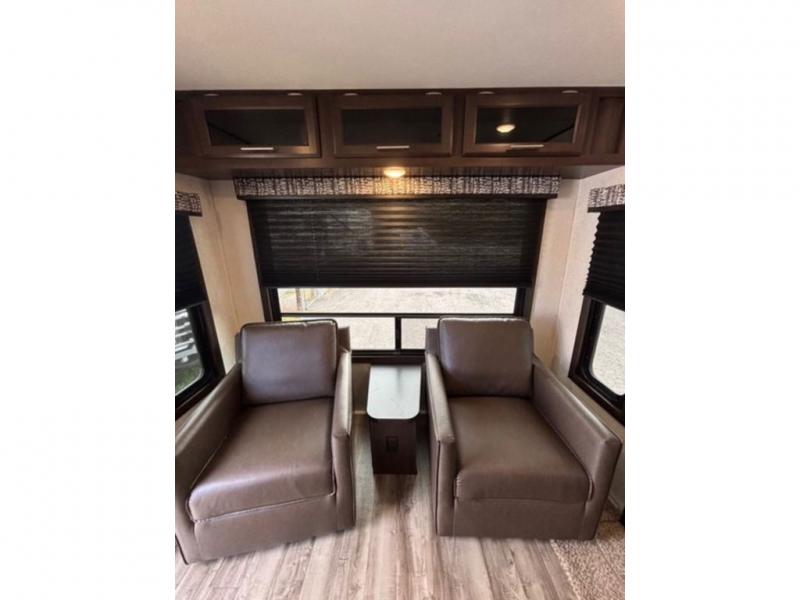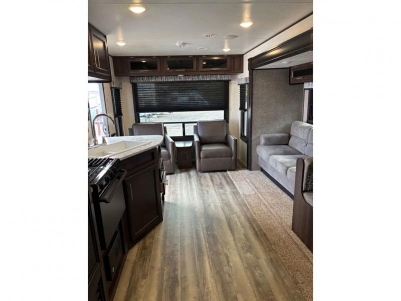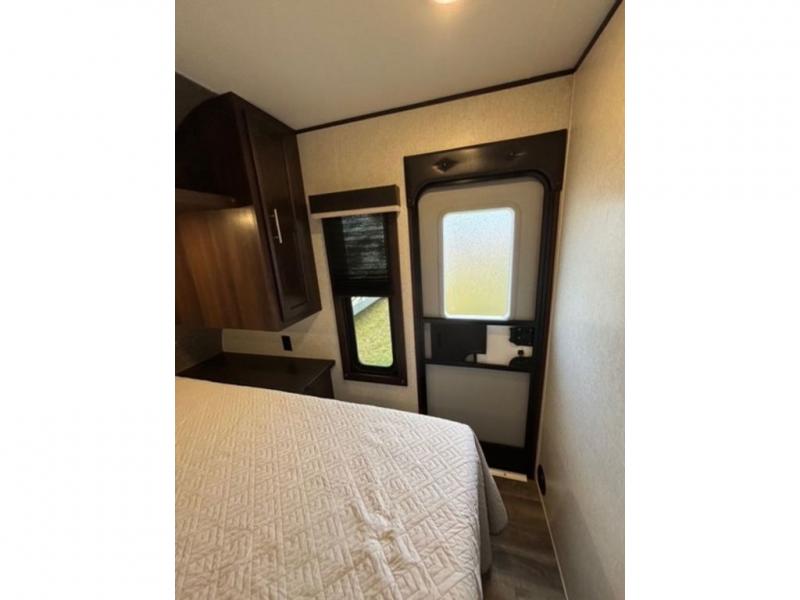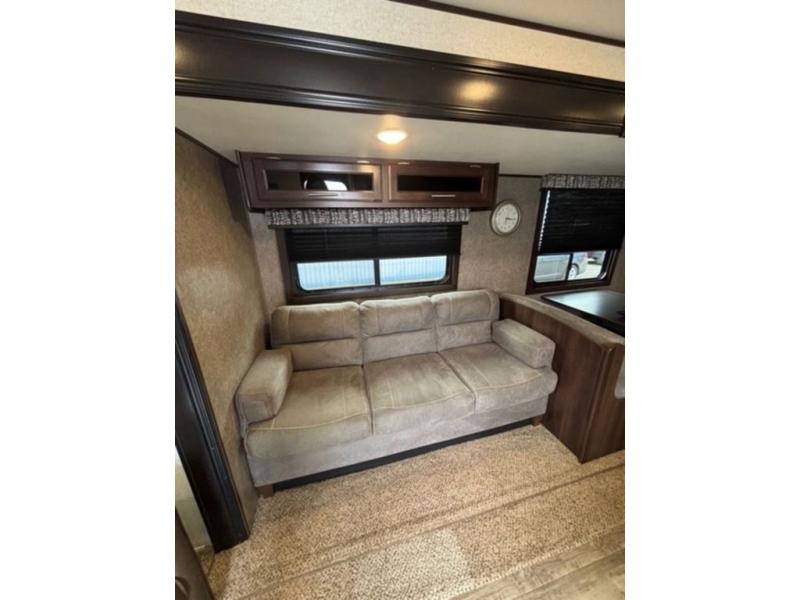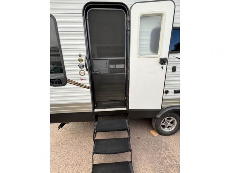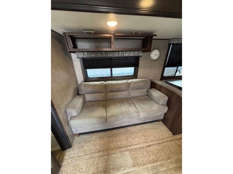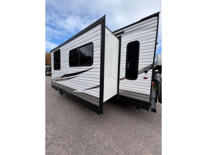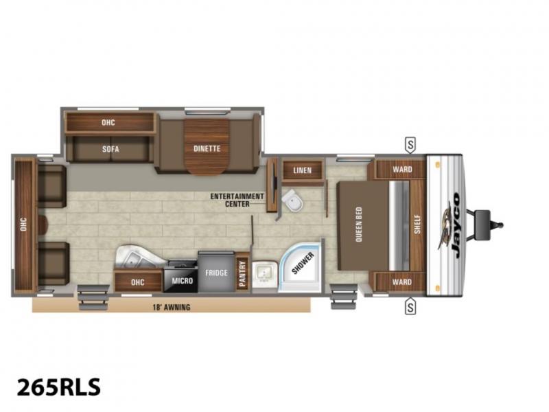 If you enjoy being in the great outdoors and prefer sleeping in comfort then this Jay Flight SLX 8 265RLS travel trailer might be the one. The private front bedroom offers a queen size Simmons mattress for the owners and a second entry into the trailer. You can relax on one of the two lounge chairs while your friends are on the additional furniture. If you decide to invite overnight guests, the J-steel jackknife sofa and booth dinette provide extra sleeping space. You will surely appreciate the convenience of the walk-through bathroom, and floor space of the single slide out. It's time to check out this model to find even more features you will love.
