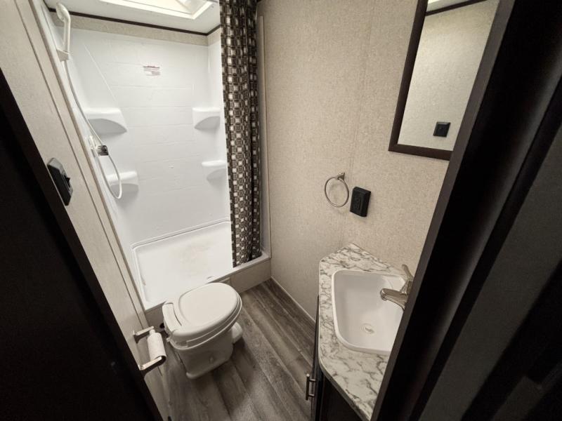 With any Jayco Jay Flight SLX 8 you will appreciate the 8-foot wide body, the reliability of the Goodyear tires made with galvanized steel and impact-resistant wheel wells, and the handy Keyed-Alike entrance, plus baggage doors for protection on the road. You will also appreciate the spacious exterior storage for you to easily access your camping gear. Inside you will find modern kitchen appliances including a three burner range with a 9,000 BTU Super Burner and piezo igniter, a Norcold refrigerator, and a microwave oven. In every model, there is a queen Simmons mattress to re-charge for your next adventurous day, and there is also a bathroom skylight to let in some natural lighting. Come see which model fits your lifestyle the best!