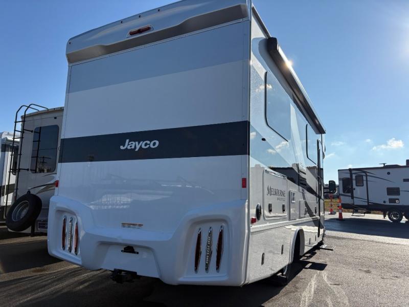 The Jayco Melbourne Prestige class C diesel motorhome offers luxury for the adventure enthusiasts. With its modern style and the automotive-bonded panoramic window in the front cap, the Soundstream Infotainment dash radio with GPS and a CD/DVD player, the remote control and heated mirrors, the backup camera with monitor, the 12V USB charging station, and the European-style curved cabinetry, this motorhome is going to impress everyone. Choose your favorite model today!