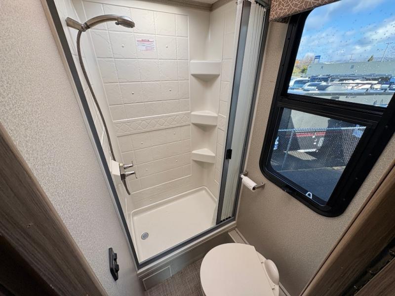 Been thinking about how you and your family can travel on vacation without having to stay in a hotel or eat at restaurants every night? Imagine having your own 50" x 80" bed, a cab-over bunk for the kids and extra sleeping space on the U-shaped dinette if needed. Now imagine riding down the road on comfortable Ultra leather captain's chairs while you listen to your kids laughing. Once at your destination you can swivel the chairs to face the kids, and make a meal in the convection microwave or on the cooktop. The private shower and toilet room will allow you to get cleaned up and ready for the next adventure while someone else is washing their hands in the bath sink that is just outside the door. This is the one, start vacationing tomorrow!