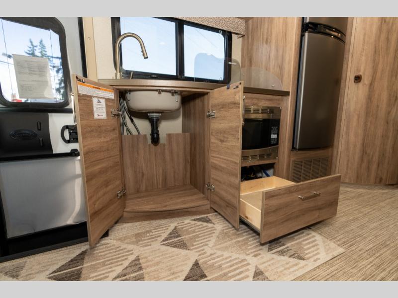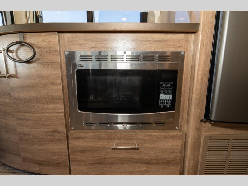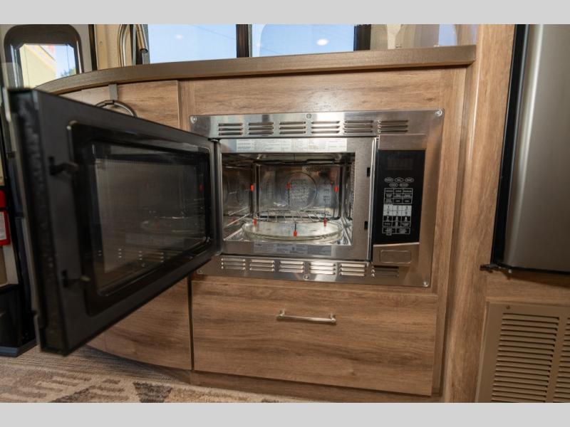 In this Melbourne Prestige, you and your family will enjoy luxury and comfort everywhere you go. Inside, just imagine relaxing on the large U-shaped dinette after getting a snack from the kitchen pantry or making a meal in the convection microwave. For those who enjoy owning a motorhome as a way to explore the outdoors or to comfortably travel indoors, this model allows you to do both with its ample windows, Ultra leather captain's chairs, a full bathroom, a queen bed and much more!