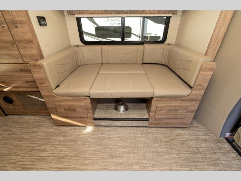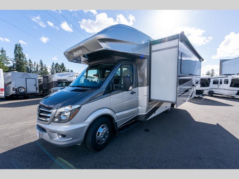 The Jayco Melbourne Prestige class C diesel motorhome offers luxury for the adventure enthusiasts. With its modern style and the automotive-bonded panoramic window in the front cap, the Soundstream Infotainment dash radio with GPS and a CD/DVD player, the remote control and heated mirrors, the backup camera with monitor, the 12V USB charging station, and the European-style curved cabinetry, this motorhome is going to impress everyone. Choose your favorite model today!