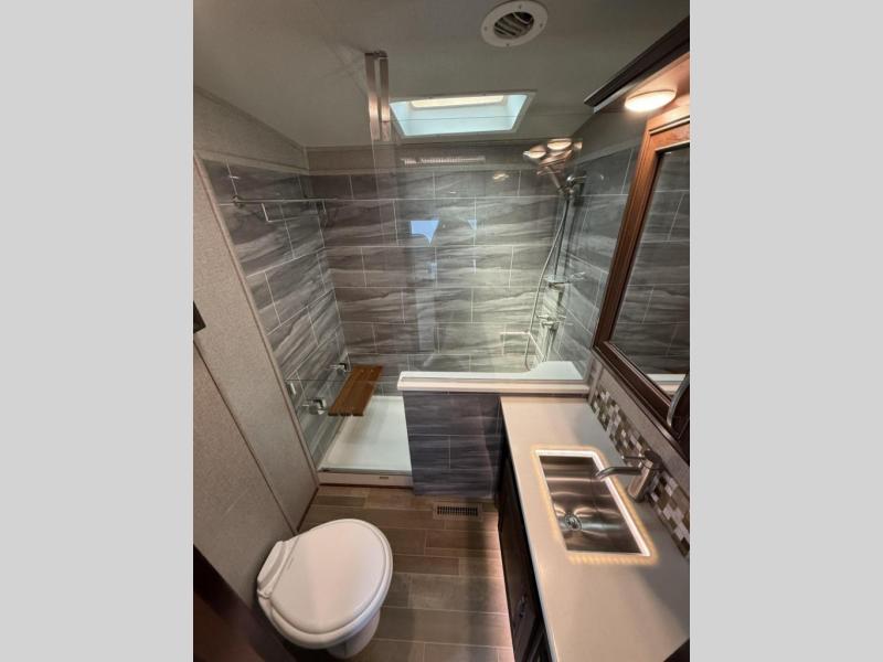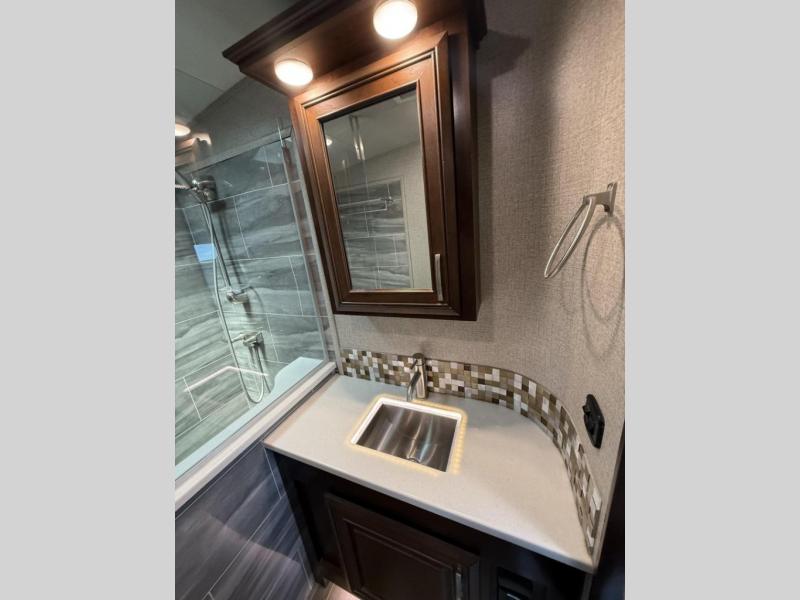 The Jayco Pinnacle is more than just another fifth wheel: it's the peak of luxury and the epitome of comfort no matter the destination! Each Pinnacle includes the Jayco-exclusive 5-Star Handling Package which comes with Dexter axles, a MORryde pin box for a smoother tow and maximum safety on the road, Dexter heavy-duty shackles, a MORryde rubberized suspension system allowing you to better absorb and isolate road shock, and Goodyear BEAST tires. You will also enjoy the interior of the Pinnacle for its opulent and luxurious details, like the stainless steel 21 cubic foot refrigerator with water/ice in the door and the powered reclining theater seats with heat and massage, and nowhere else will you feel more refreshed and relaxed than in the lavish bathroom with its oversized residential shower.