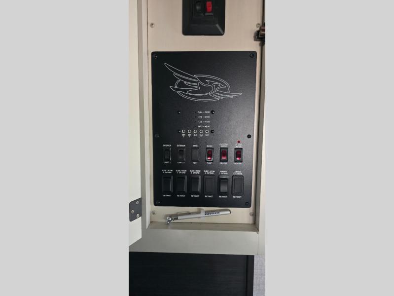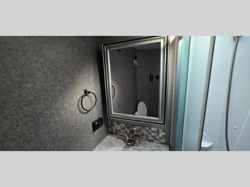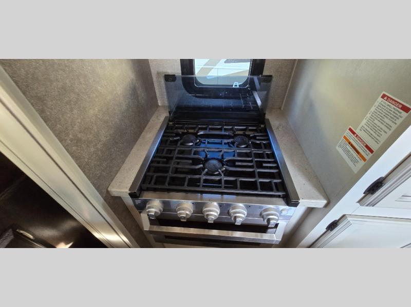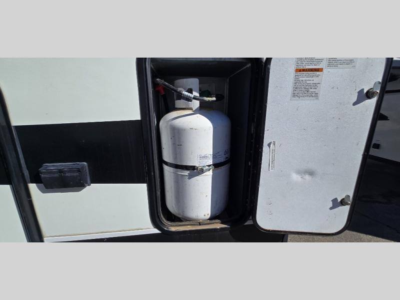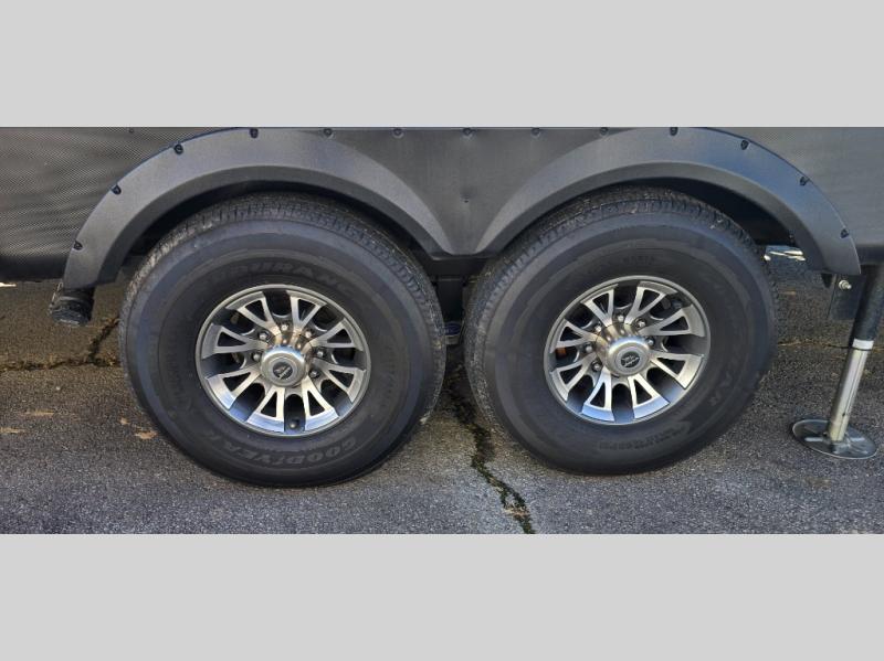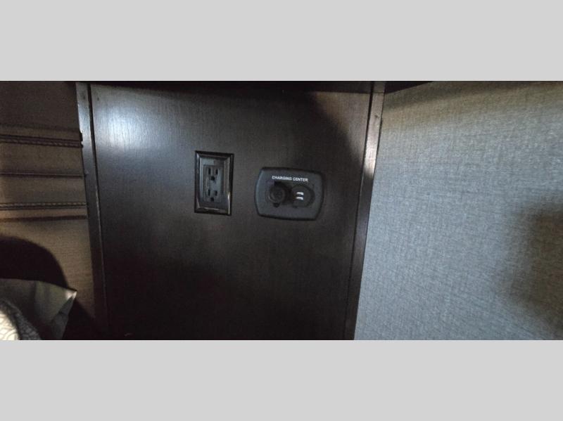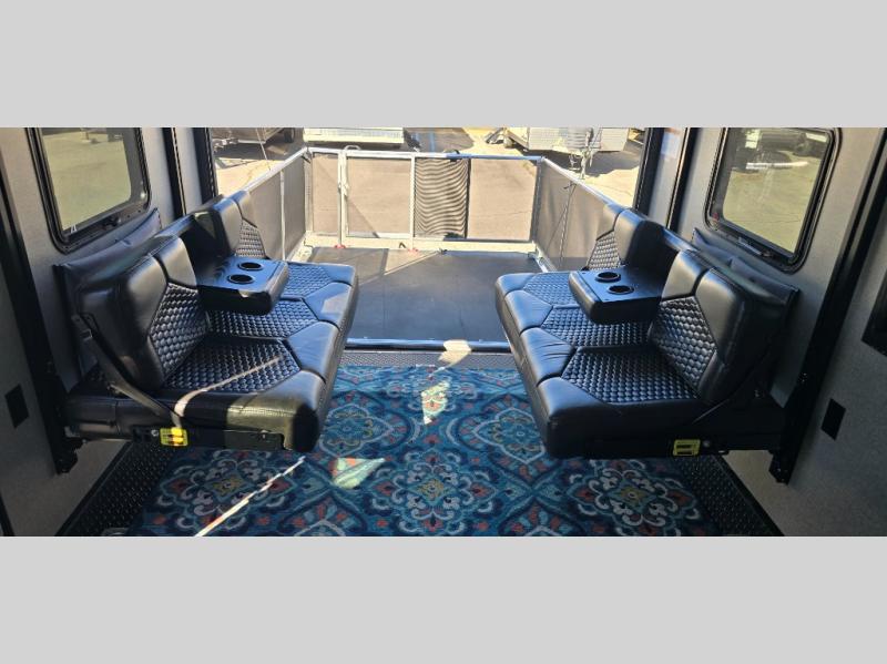 The best feature of the Jayco Talon toy hauler is definitely the versatile garage area. The 2,500 LB capacity ramp allows you to tow along even the heaviest of outdoor accessories during the day, and the convertible sofa beds and pull-down ramp door screen allow you to have a lounge and relaxation area each night. During those cool summer evenings when the night sky shines its brightest, you can sit with friends on the enclosed ramp or take the party outdoors underneath the electric awning lined with LED lighting. The included lockable and insulated storage doors are a part of the Keyed Alike single key system which means that you only need to worry about one key for the entire unit, and the 16" tires that the Talon is built upon are a part of the American-made Goodyear brand.
