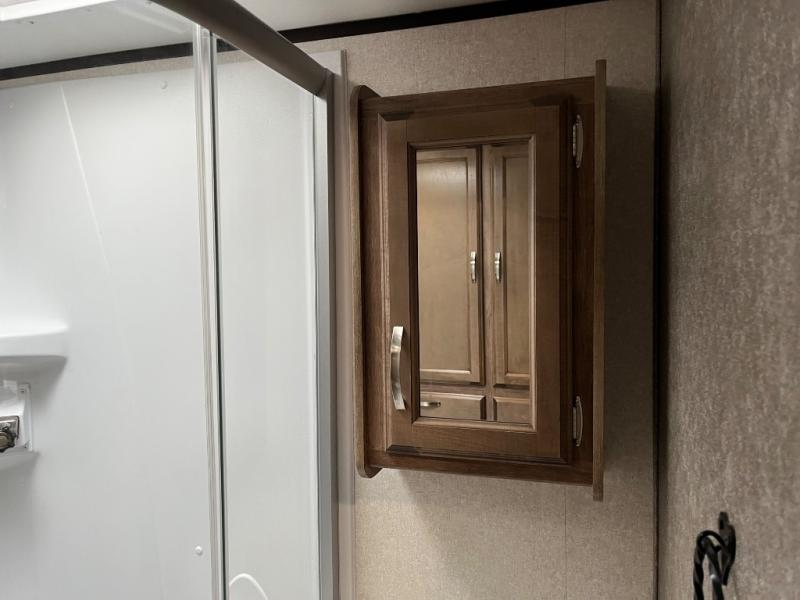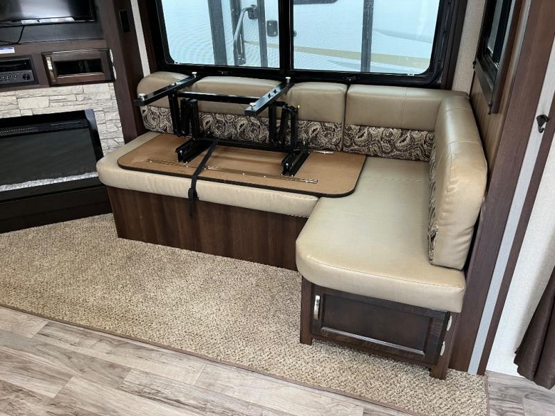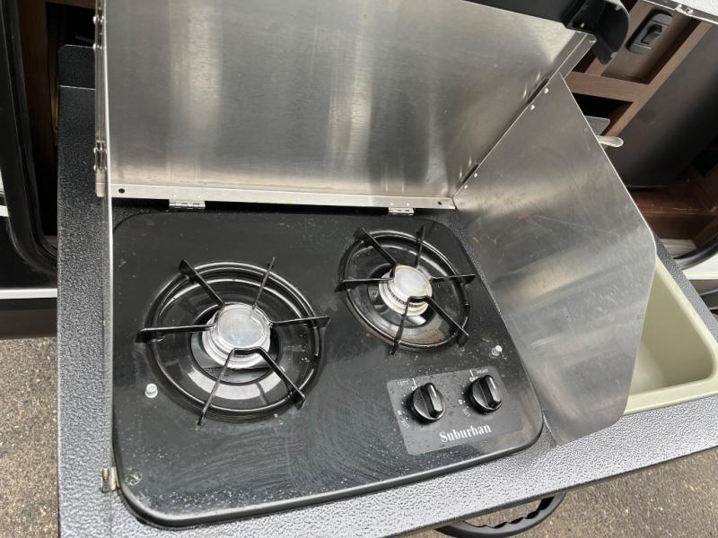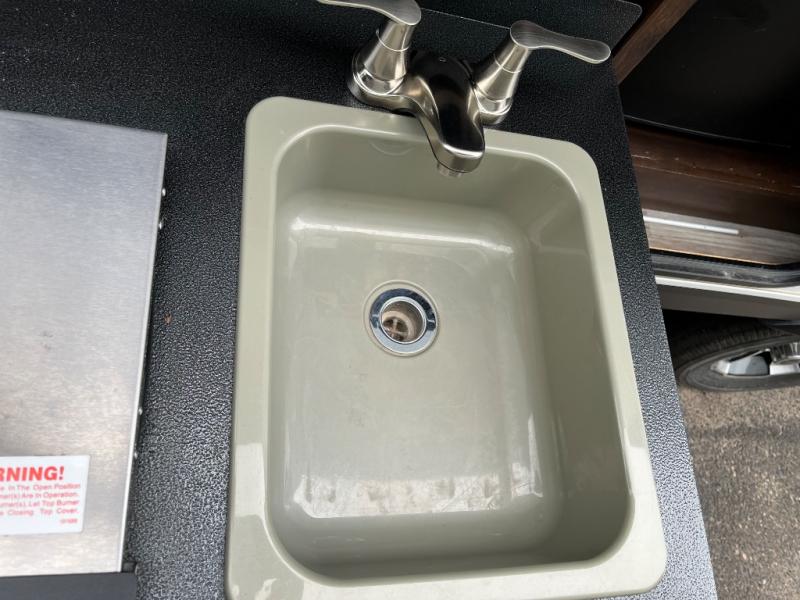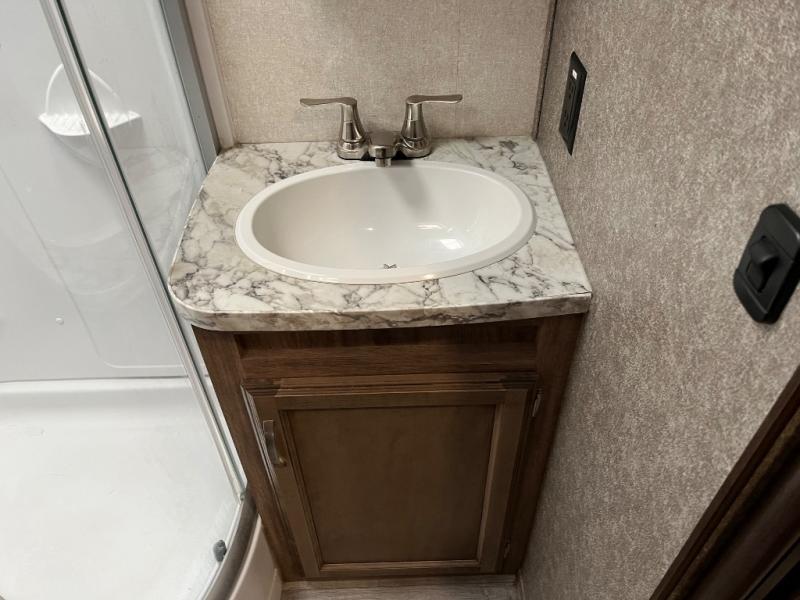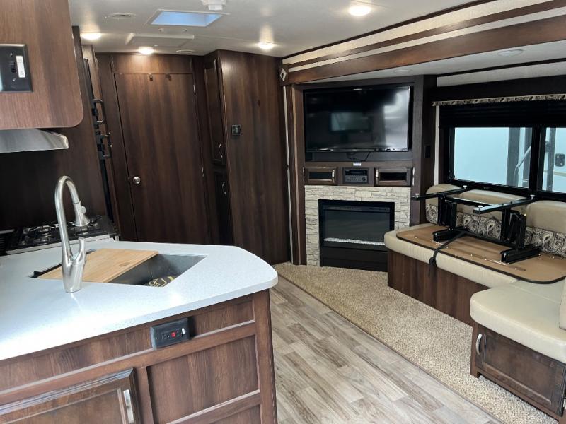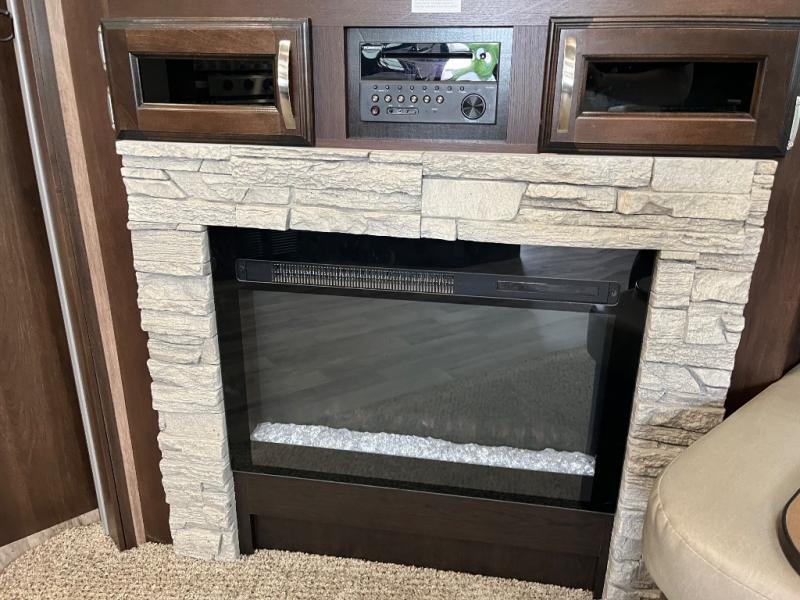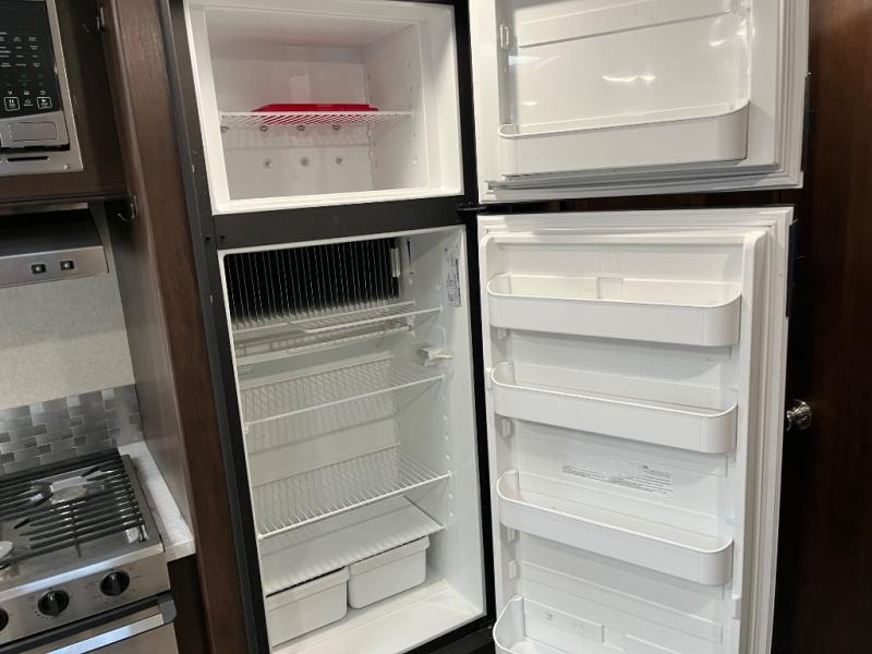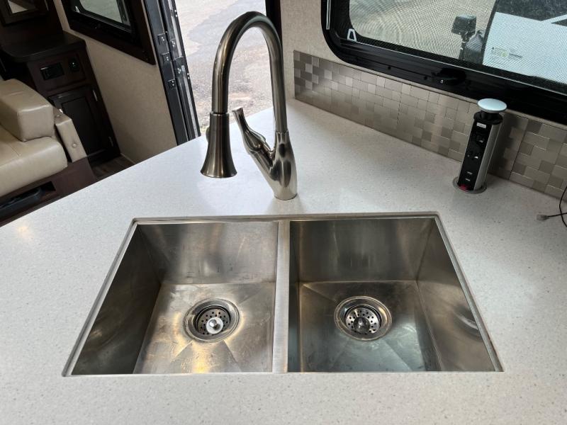 This White Hawk travel trailer is a wonderful addition to any family who is looking for an RV that delivers style and reliability. The stainless steel appliances allow you to cook and store dinner with ease, and in this unit, you aren't restricted to only cooking dinner indoors because you can take the entire party outside of the trailer to the outdoor kitchen. After a long night of fun underneath the 20' electric awning, you can rest comfortably indoors on the Murphy bed that now allows 100% access to the exterior pass-through storage.