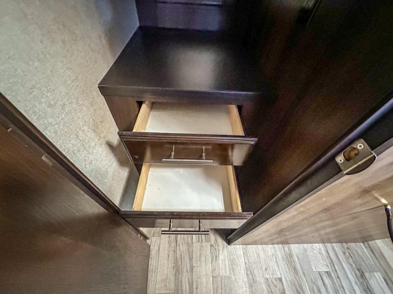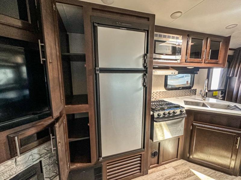 Jayco has made certain that you will stand out from the crowd while traveling in the White Hawk by adding their Magnum Truss Roof System which can withstand up to 4,500 pounds, fifty percent more than the competition. The American-made Goodyear tires with self-adjusting electric brakes are the perfect base to the sleek and aerodynamic exterior. On top of all of that, the entire trailer is backed by the Jayco 2-year limited warranty so that you can travel with confidence during every adventure you take.