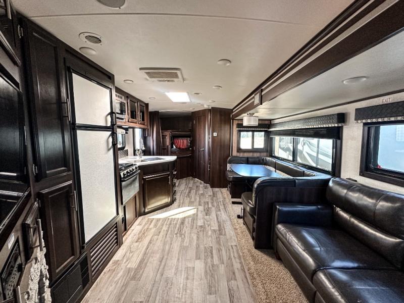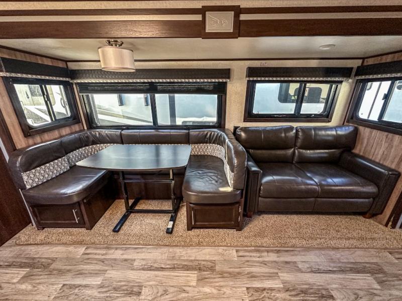 Owning this White Hawk travel trailer means that you own a trailer which provides greater peace of mind and added comfort. From the smallest of details, such as a decorative kitchen backsplash and arched ceilings, to the most noticeable inclusions, like stainless steel appliances, this trailer has included everything you will need for a successful and reliable adventure. The addition of double-size bunks and a U-shaped dinette gives this trailer the ability to sleep ten people, and the included outdoor kitchen gives you the ability to feed those people.