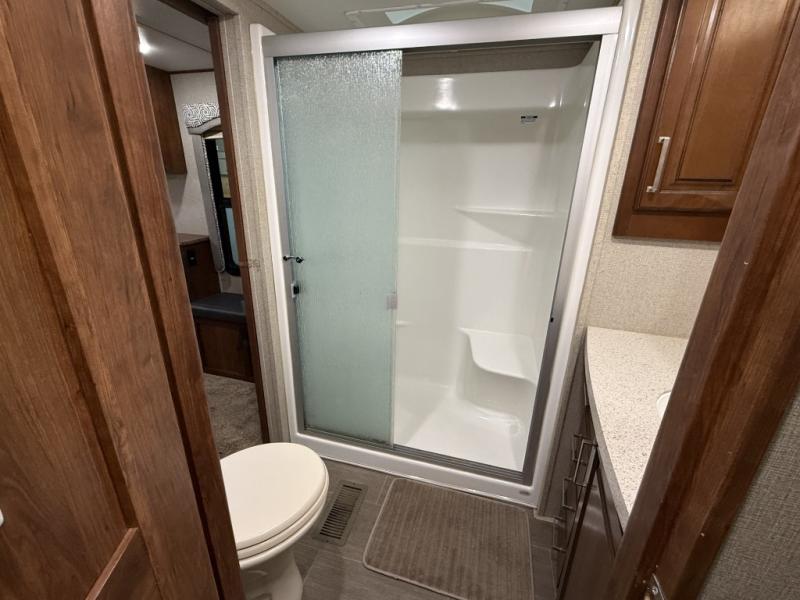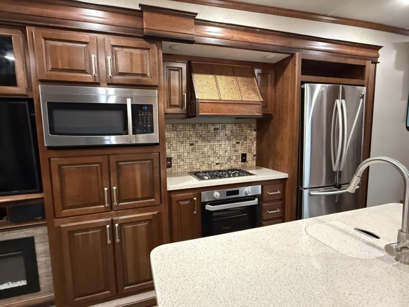 When you choose an Alpine fifth wheel by Keystone RV, you are choosing luxury. The Whisper Air System is the quietest cooling system ever developed, and it keeps your RV at the perfect interior temperature no matter what the outside weather may bring. Every aspect of the Alpine has been designed to enhance your full-time camping experience, like the oversized pass-through storage which is the industry's largest at roughly 200 cubic feet, and the central vacuum system will help you keep your Alpine looking its best throughout each adventure. You will also love the Furrion RV Chef Collection that gives you the ability to cook with precision and consistency as you travel the country and helps you provide your guests with a higher level of cuisine during each camping trip.