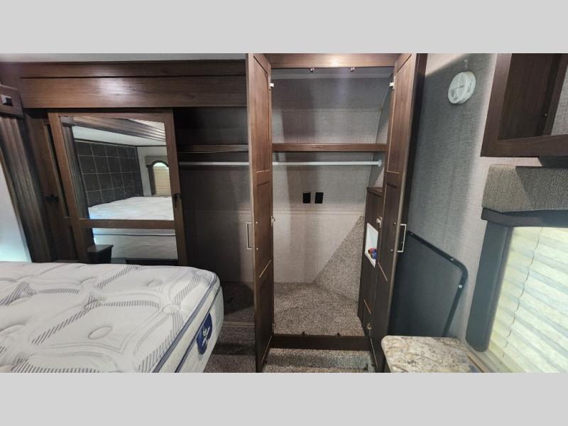 With any Keystone Avalanche fifth wheel, you will enjoy getting to your favorite destination with the exceptional turning radius from the MAX TURN high-gloss fiberglass front and rear cap including the aerodynamic design for less drag, as well as the Road Armor suspension. Once you have arrived at your destination, the One Place Command Center with its centrally located operational switches and gauges will allow you to set up your RV quickly, and the one-touch electric awning with adjustable arms will provide protection from the sun and weather while you load your clothing, dishes, and gear into all of the interior storage compartments.