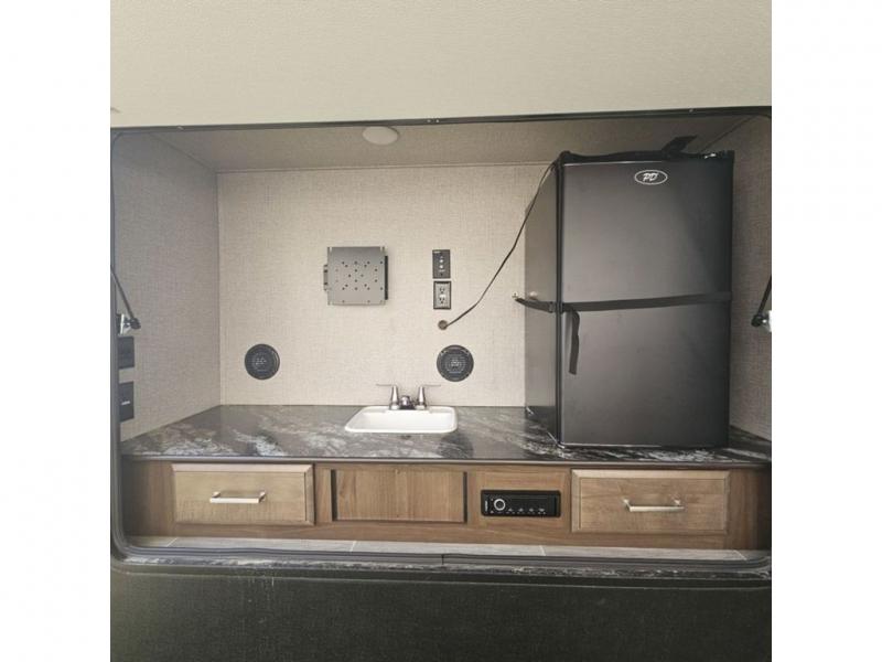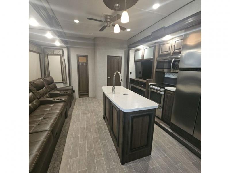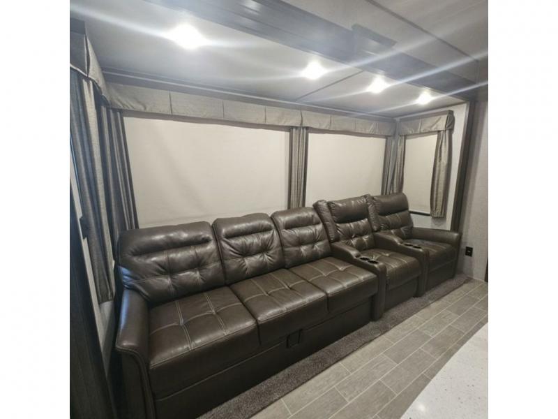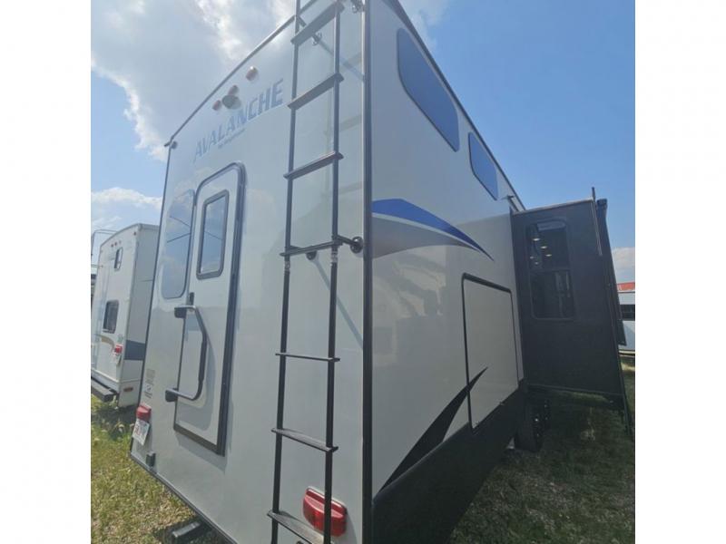 You won't be able to find an RV more extravagant than this Avalanche fifth wheel! From the master suite with its king-size bed and private bathroom entrance, to the private guesthouse with its own rear entry, full bathroom, and loft, this unit is filled to the brim with exceptional features. The wide-open kitchen and living area allows plenty of campers to gather together to watch the 50" LED TV, play games at the removable table, and stand around the kitchen island eating food and talking about the day's adventures. On top of all of that, you will find even more exciting amenities on the exterior portion of this unit with the outdoor kitchen and entertainment center.