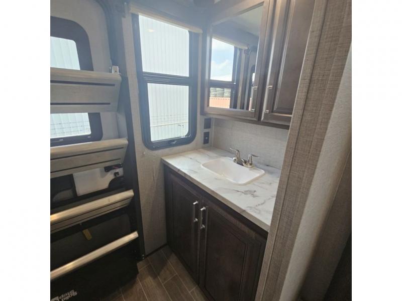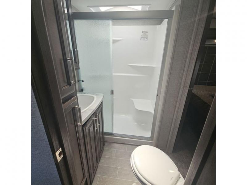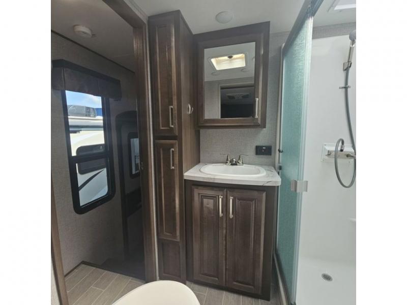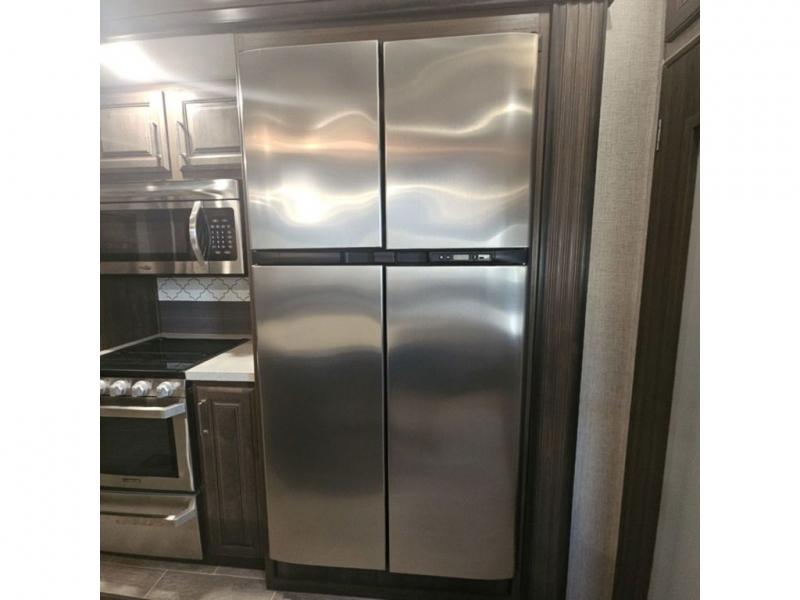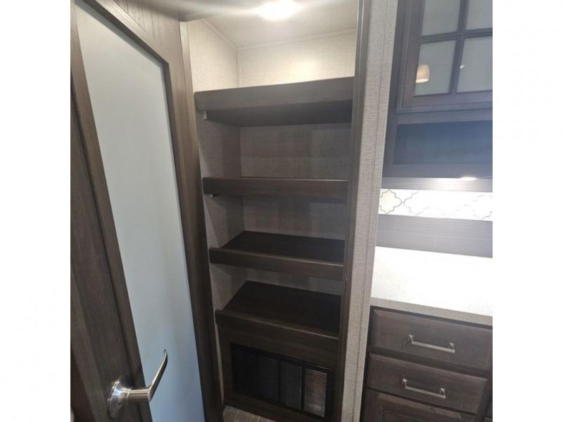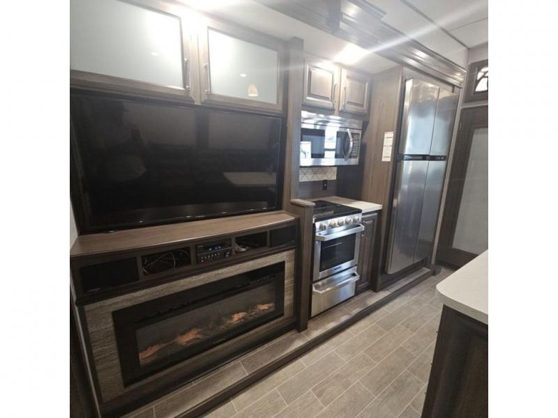 With any Keystone Avalanche fifth wheel, you will enjoy getting to your favorite destination with the exceptional turning radius from the MAX TURN high-gloss fiberglass front and rear cap including the aerodynamic design for less drag, as well as the Road Armor suspension. Once you have arrived at your destination, the One Place Command Center with its centrally located operational switches and gauges will allow you to set up your RV quickly, and the one-touch electric awning with adjustable arms will provide protection from the sun and weather while you load your clothing, dishes, and gear into all of the interior storage compartments.