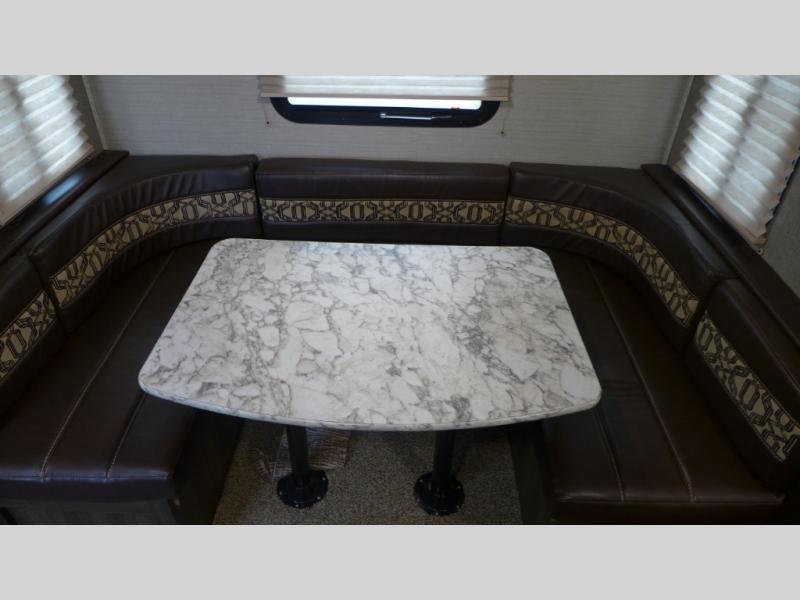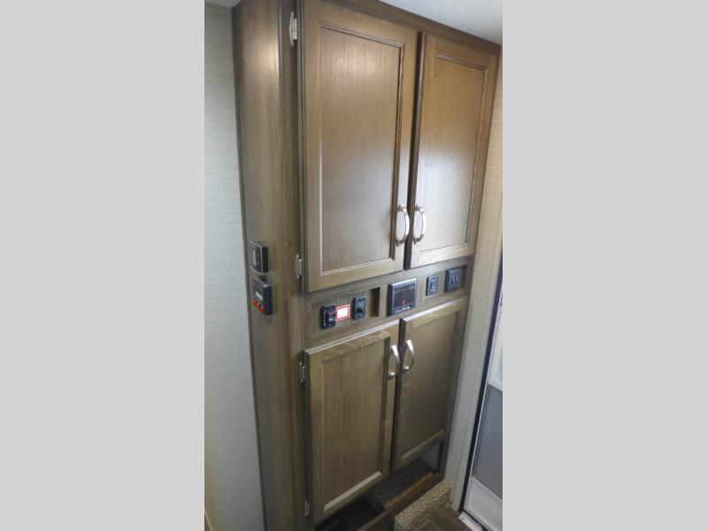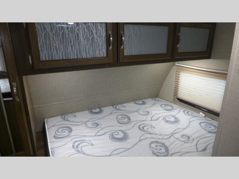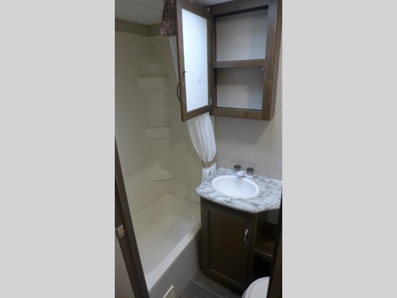 If camping on the weekends with your friends and family sounds fun, then this Bullet Crossfire travel trailer is the perfect unit for you. After a fun day of hiking, biking, and swimming, you can dine together on the U-shaped dinette or take a quick nap on the queen-size bed. If you don't feel like preparing a full meal for dinner, you can grab the left overs that you have stored in the 6 cubic foot double-door refrigerator and heat them up in the microwave for an easy meal. The kitchen pantry will be where you head to late at night when you are looking for that last box of cookies or a bag of popcorn.