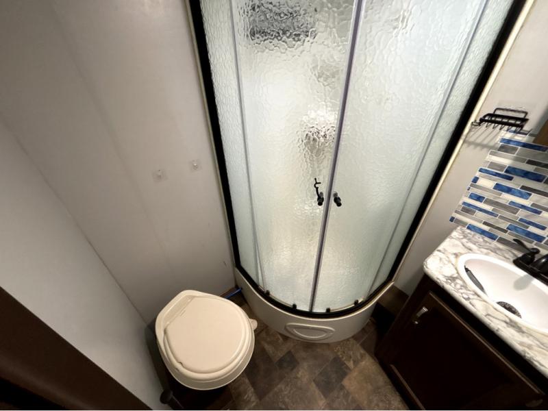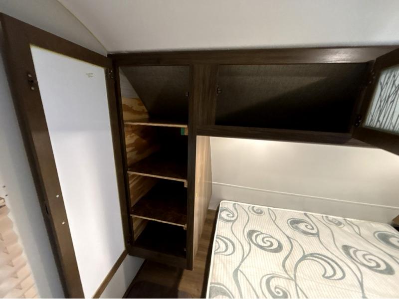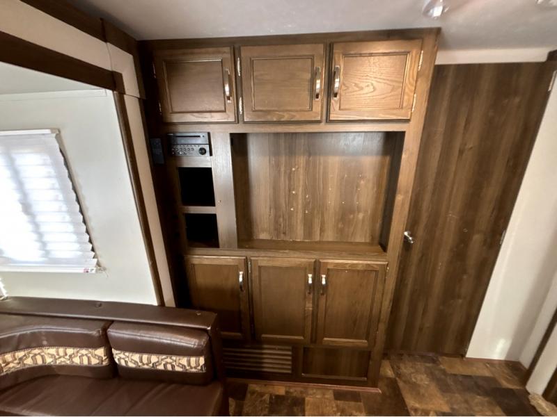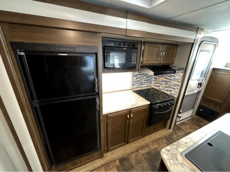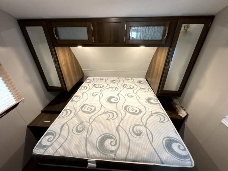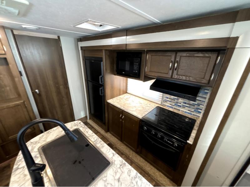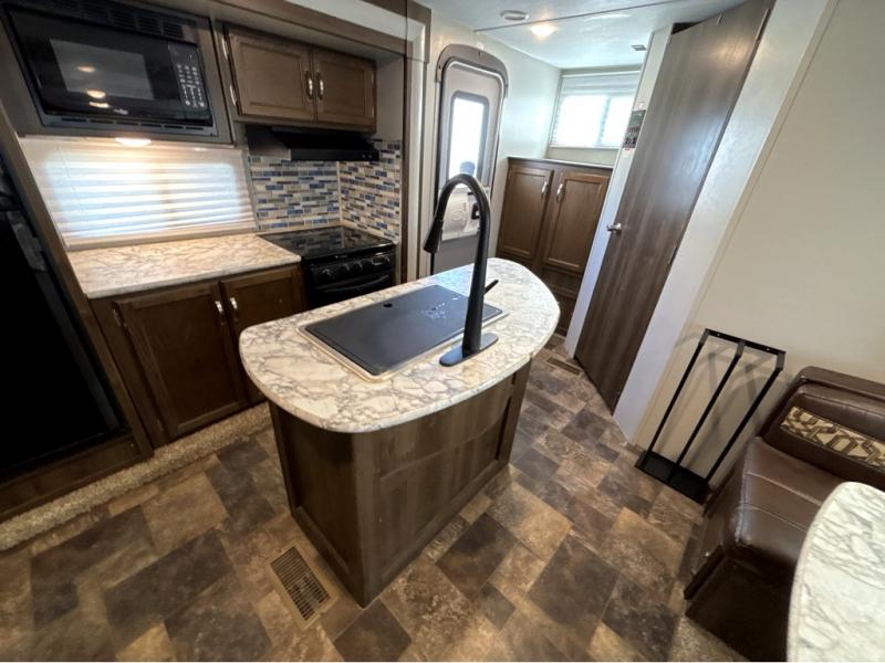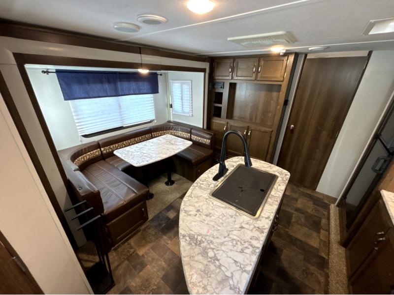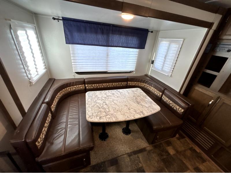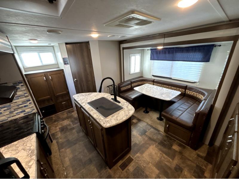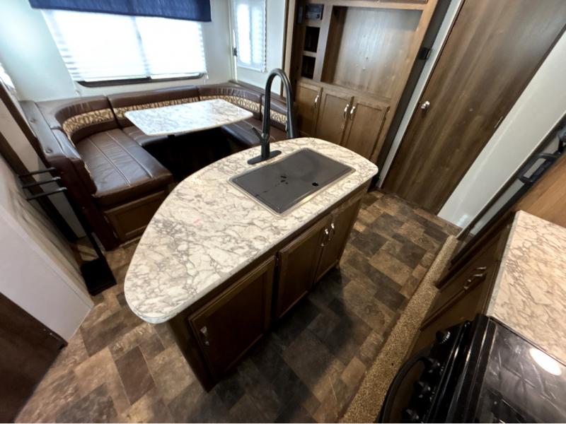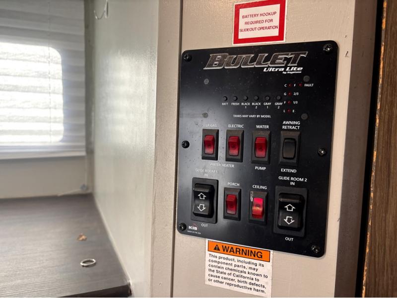 For the couple who is ready to get up and go at the last minute, this Bullet travel trailer is ideal for you! Inside you will find everything you need to enjoy your time away from home. From the spacious interior, which is made possible because of two opposing slides, to the U-shaped dinette where you can enjoy your meals together, this trailer delivers the very best features. The kitchen island features a double sink and extra counter space which makes meal preparations a breeze, and when you are ready to turn in for the night, the private bedroom provides the most comfortable accommodations.