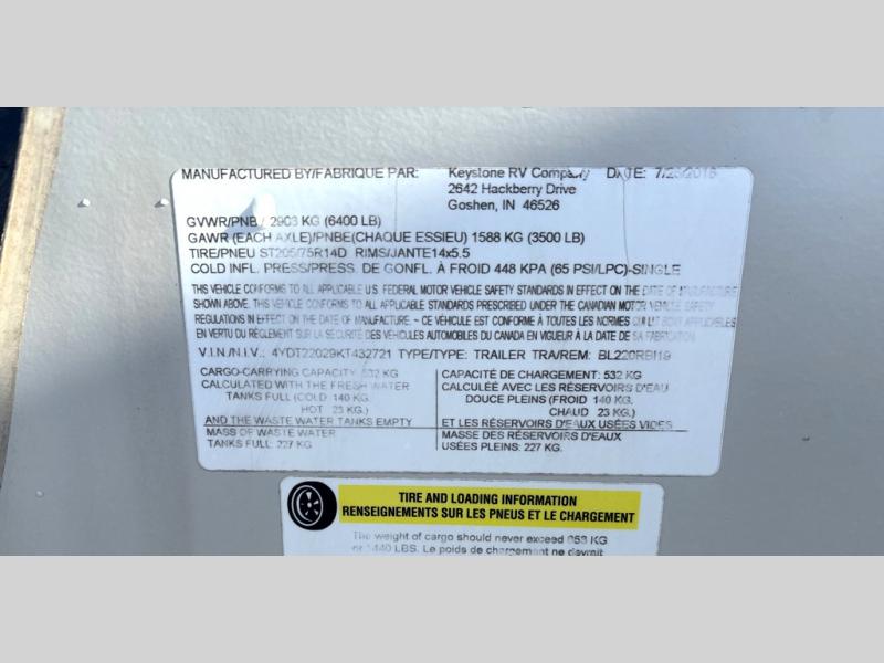 Used 2019 Keystone RV Bullet 220RBI Travel Trailer