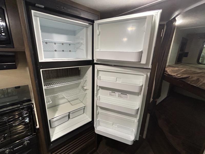 Whether you're spending your time soaking up the sun at the edge of the lake or trekking into the forest on a hunt for fresh berries, the Keystone Bullet travel trailer will not only get you to your destination, but it will also keep you happy while you're there. With the most luxury features of any other ultra lite trailer, like the exterior speakers, laundry chute, and LED lighting, the Bullet continues to provide the number one ultra lite travel trailer in America. Because of the contoured shape of the radius front profile on the Bullet, it offers less wind resistance as you tow it along the highway, and when you combine that with the extremely lightweight floor plan design, you get one unit that will help you cut costs when spending money on fuel.