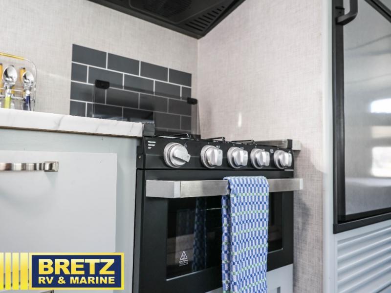 You will love how accommodating this Bullet travel trailer is! Because this unit can sleep nine people, it is a great option for those who travel with large families or like to host big weekend parties, and the front private bedroom will give you a place to escape if your guests get a little too wild. With the addition of the large slide, you will have plenty of room indoors to get together for a movie night with the 32" LED TV, and the outdoor kitchen will be perfect for hosting summer barbecues.