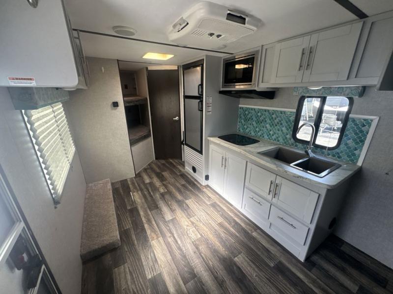 For a fun camping adventure with the family, you need this Bullet Crossfire travel trailer. The double-size bunks are the perfect spot for your kids to get together each afternoon for nap time or play time, and the Murphy bed that is hidden in the front of this unit will provide comfort and relaxation for you as you drift off to sleep each night. You will be able to put together healthy and delicious meals for your family no matter where you find yourself in this trailer because of the full kitchen inside and the outdoor kitchen.