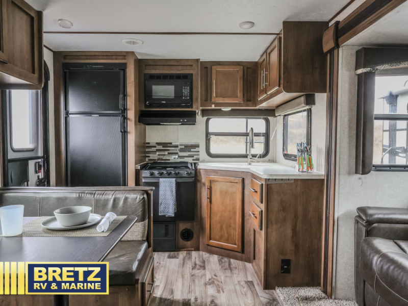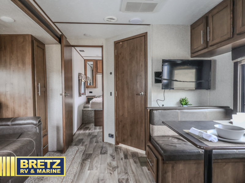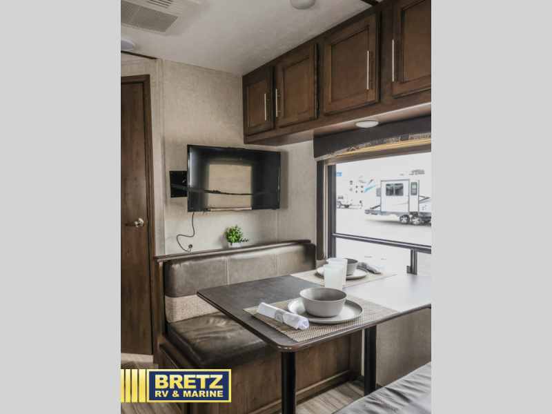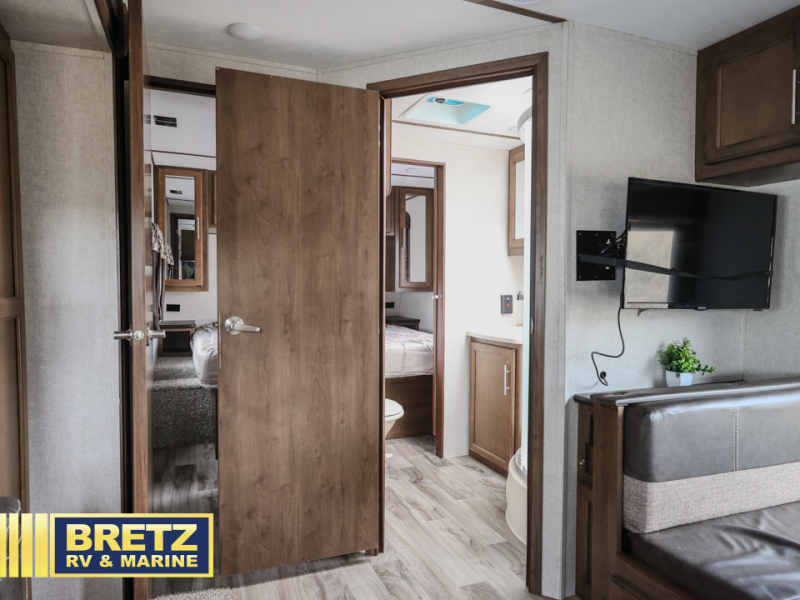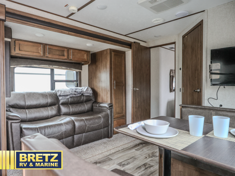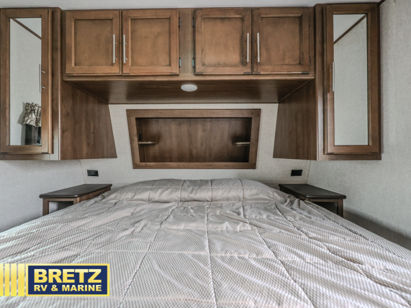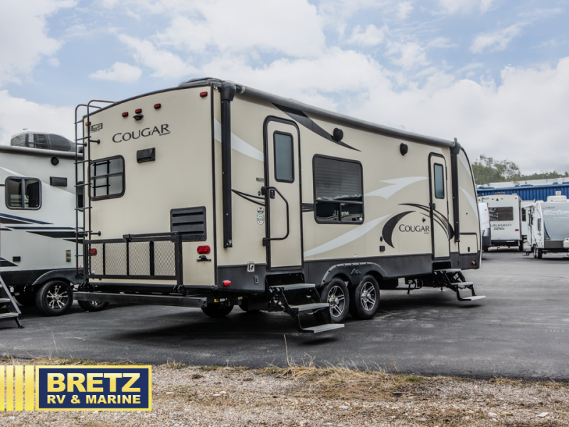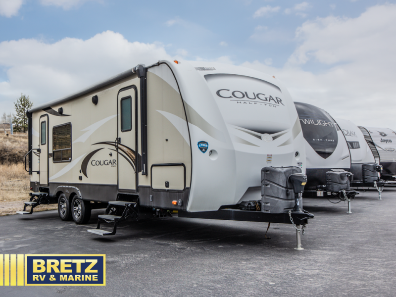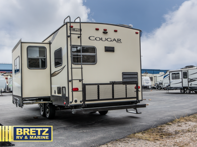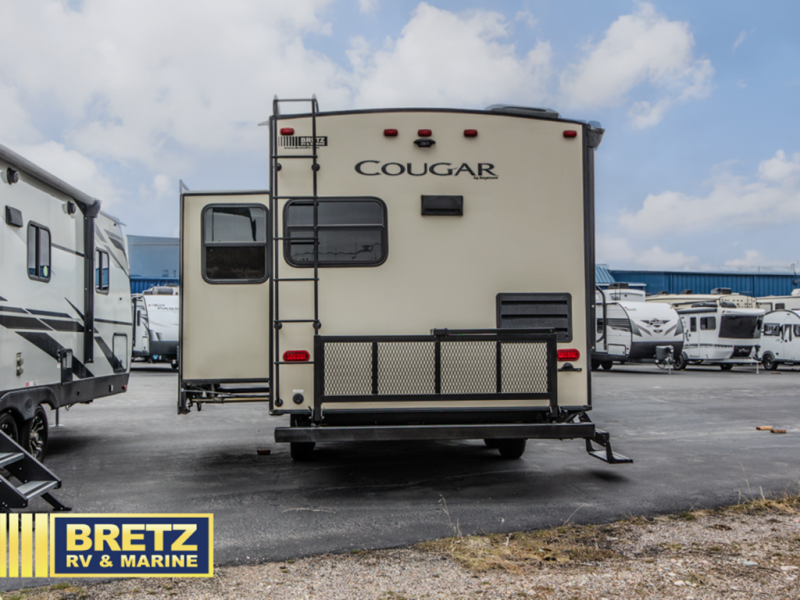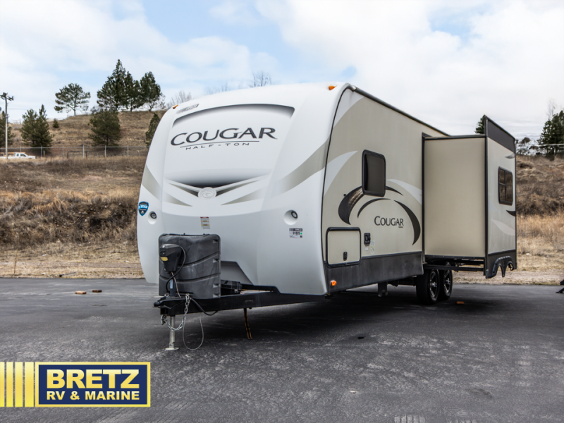 This Cougar Half-Ton is ready for whatever comes next for you and your family. From the tri-fold sleeper sofa slide out with linen storage, the booth dinette, and the king bed in the front bedroom, you are sure to find a sleeping space to call your own. The two entry doors into the bathroom provide access from the living area or the front bedroom, now that's convenient. The rear kitchen allows you to grab food or a cold drink before heading outdoors for your next adventure. Outside, the power jack will come in handy when setting up, and the pass-through storage will provide more space for your larger camping gear. Step inside today!