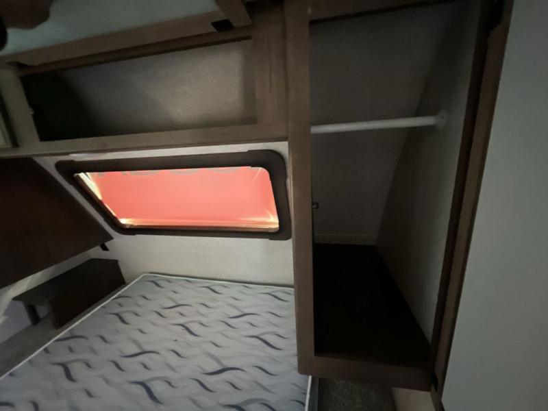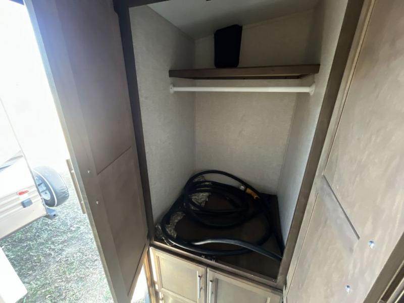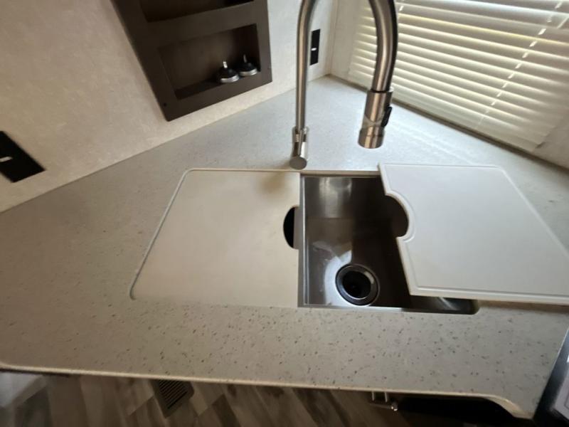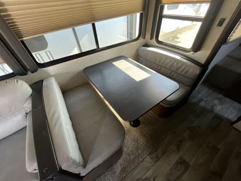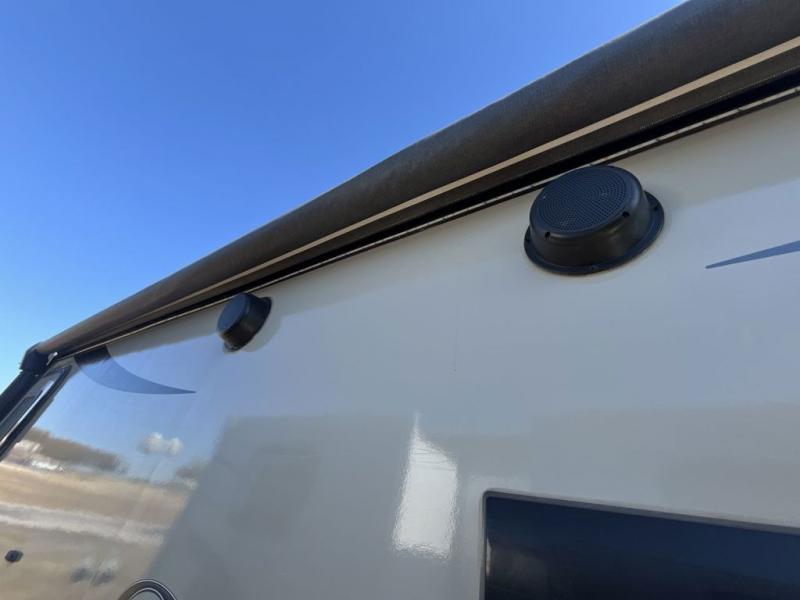 If you are a couple that likes to invite friends on your trips then this travel trailer is ready for you! You will find the single slide out with a booth dinette and tri-fold sleeper sofa provides plenty of seating as well as extra sleeping space for overnight guests. The front private bedroom allows you to have your own space when needed, plus the second entry into the trailer comes in handy. Outside, you can make burgers on the capital grill and store drinks in the mini refrigerator when wanting to be outdoors where the action is. The power jack will make setting up easy, plus there is more to love like the views out of the front windshield, and convenience of the full bathroom.