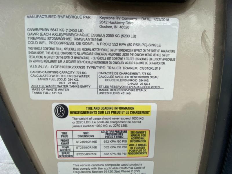 Used 2019 Keystone RV Cougar 310RLS Fifth Wheel