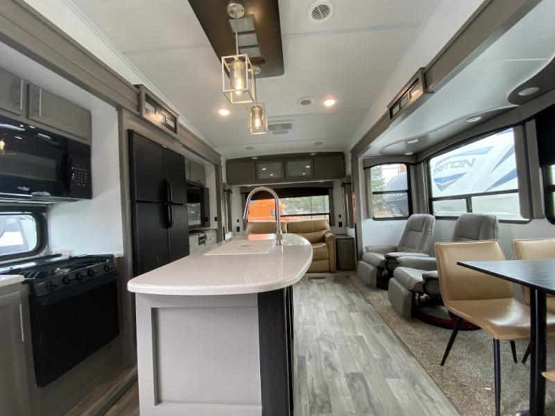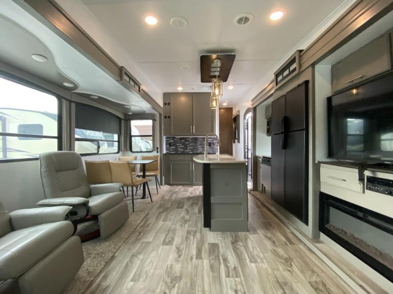 With any Keystone Cougar you will enjoy the Max Turn technology in the front cap when driving around town and parking the fifth wheel. You will be able to camp in any weather with the forced-air heated and enclosed underbelly with enclosed dump valves and Astrofoil insulated slide floors. If you need to stay cool or warm, these units have you covered. Inside, you are sure to love the LG solid surface countertop in the galley, the two TVs, the Cougar vintage maple glazed hardwood, and much more! Come get your favorite Cougar model and start making memories.