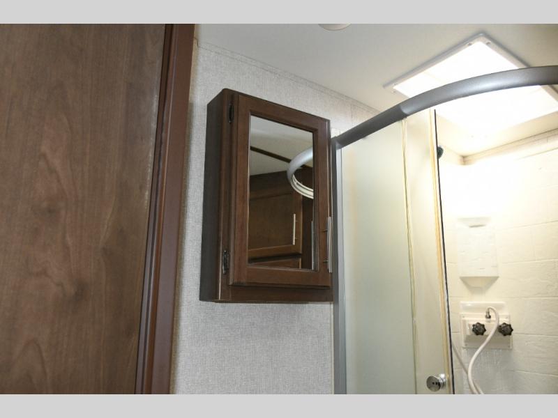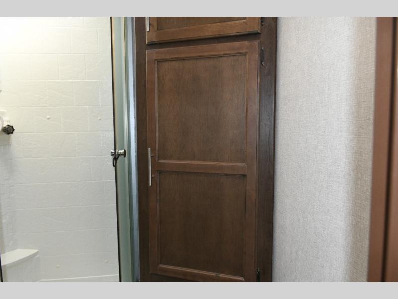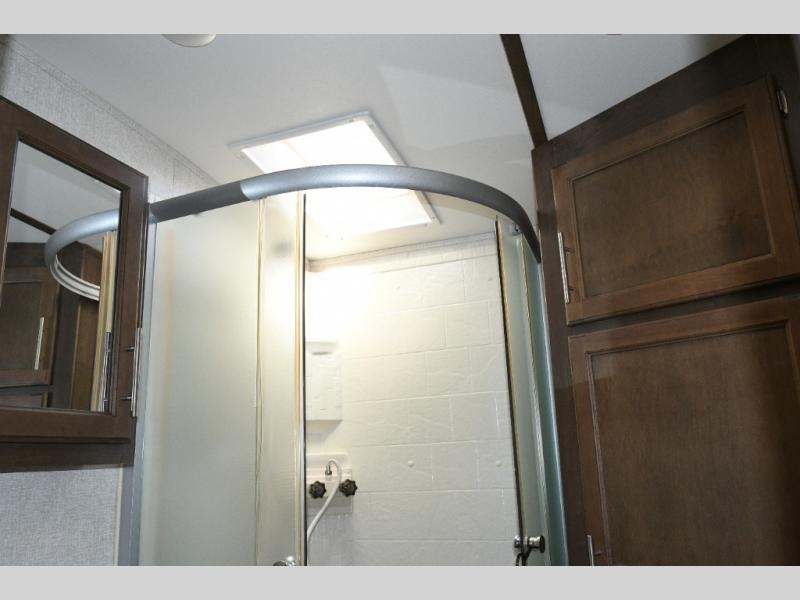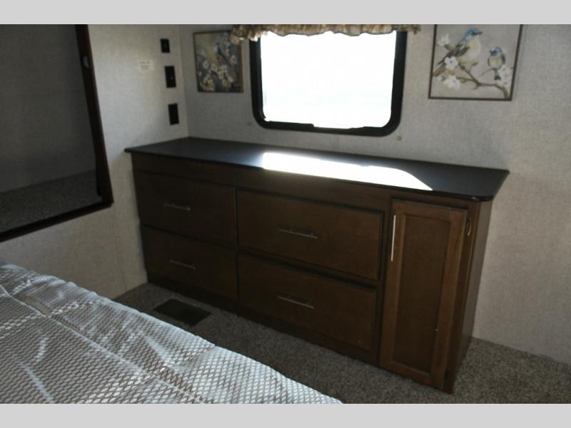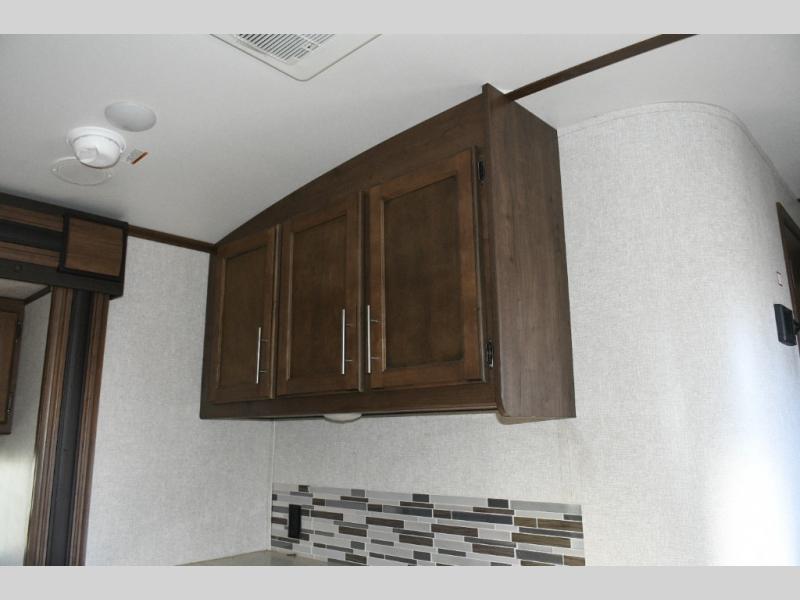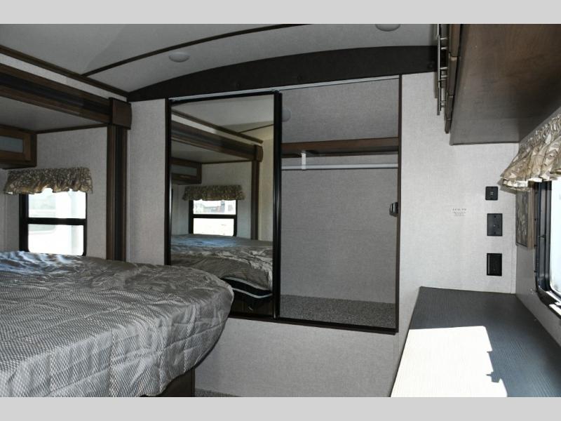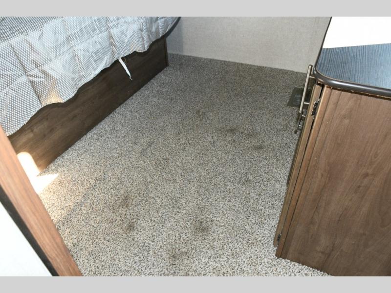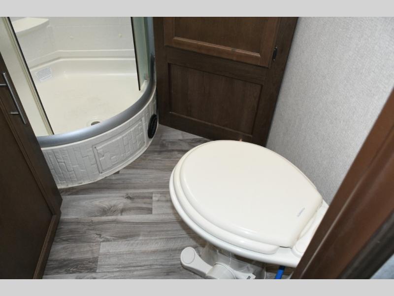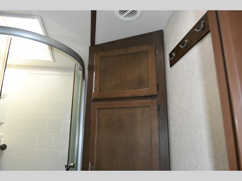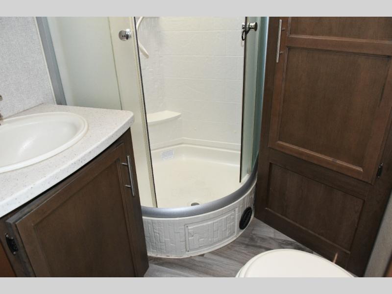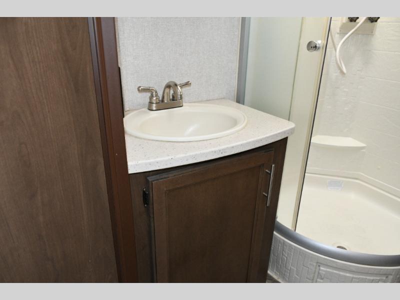 Up front, the master suite offers a slide-out king bed, generous storage, and direct access to the walk-through bathroom. With its space-saving door and thoughtful layout, you’ll enjoy comfort and privacy without feeling cramped.