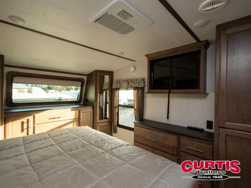 With any Keystone Cougar you will enjoy the Max Turn technology in the front cap when driving around town and parking the fifth wheel. You will be able to camp in any weather with the forced-air heated and enclosed underbelly with enclosed dump valves and Astrofoil insulated slide floors. If you need to stay cool or warm, these units have you covered. Inside, you are sure to love the LG solid surface countertop upgrade in the galley, the two TVs, the Cougar vintage maple glazed hardwood, and much more! You will also love the IN-Command Smart automation with global connect offering full remote thermostat control including scheduling with the mobile app, control of slide rooms, awnings, and light groups also available on the touchscreen display commander, plus there is a panic/intruder alert. Come get your favorite Cougar model and start making memories.
