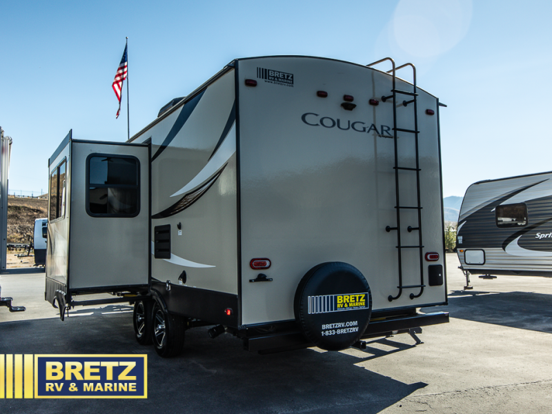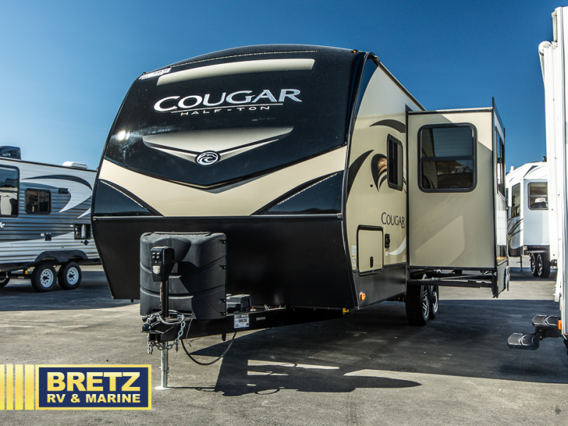 If you are a couple or a family of four this Cougar Half-Ton will provide plenty of room for relaxation, fun, and sleeping space for all! From the U-shaped dinette slide out, and the king bed up front with a patent-pending windshield for beautiful views, you are sure to find a space to call your own. There are plenty more inside features and options, plus outside the power jack will come in handy when setting up at your favorite spot, and the awning will provide some shade when hanging out with family and friends. Step inside!