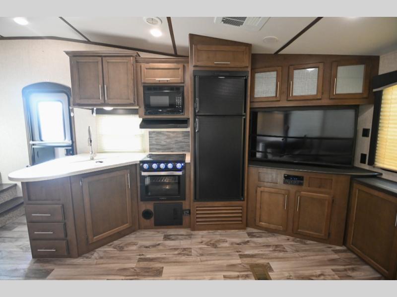 With any Keystone Cougar Half-Ton fifth wheel you will be able to camp in any weather with the forced-air heated and enclosed underbelly with enclosed dump valves and astorfoil insulated slide floor. If you need to stay cool or warm, these units have you covered. Each interior includes oversized panoramic windows that are fully ventilated, the KeyTV which is a multi-source signal controller, and new modern interior styling with pillow-top seating, a fold-flat sofa and dimmable lighting. You are sure to appreciate the iN-Command Generation 3 with Global Connect giving owners total control over power, slides, awnings, HVAC and more. Choose your favorite model today!