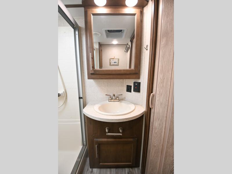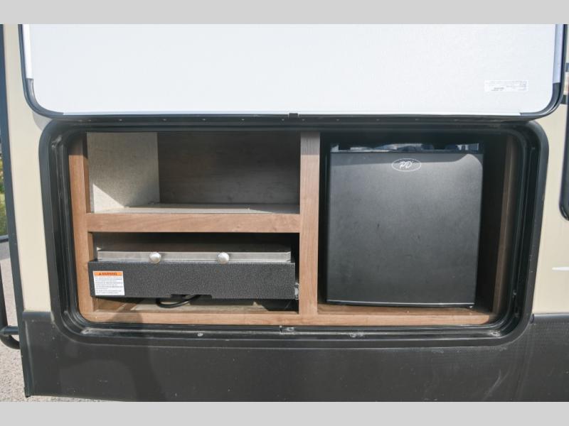 If you are a couple or family just imagine all the camping you can enjoy with this Cougar Half-Ton. You can safely and easily hitch up at home and at the park with the Hitch Vision backup mirror. Outside, you can make meals on the capital grill and store your drinks in the mini refrigerator while visiting with other campers. When you are inside, you will find that the two slide outs provide more interior floor space to stretch out your legs, and the rear entertainment center including storage allows you to relax while the chef is cooking with full amenities. The pivot hinge door into the bathroom is convenient including the seat in the shower. Take a look!