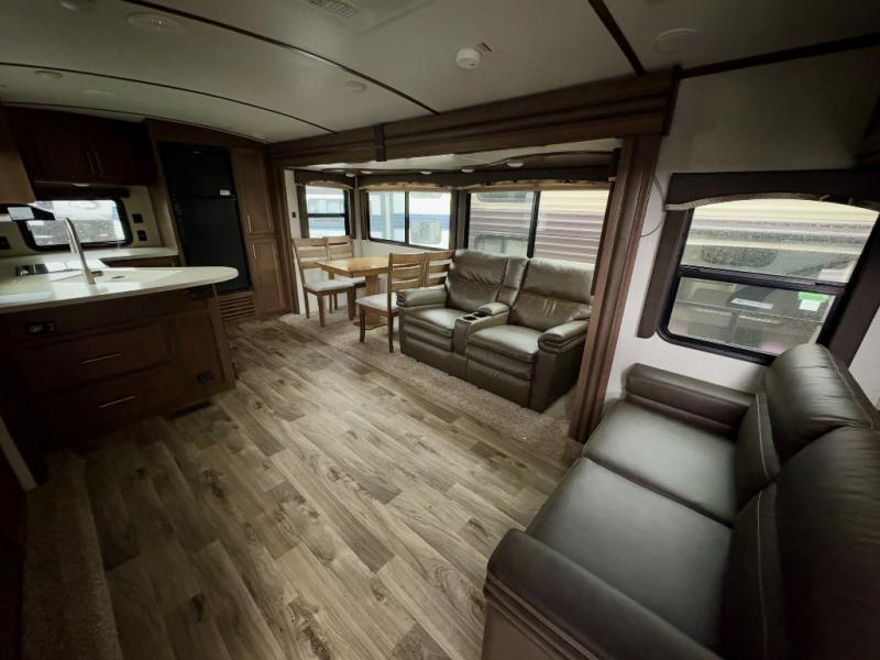 With any Keystone Cougar Half-Ton fifth wheel you will be able to camp in any weather with the forced-air heated and enclosed underbelly with enclosed dump valves and astorfoil insulated slide floor. If you need to stay cool or warm, these units have you covered. Each interior includes oversized panoramic windows that are fully ventilated, the KeyTV which is a multi-source signal controller, and new modern interior styling with pillow-top seating, a fold-flat sofa and dimmable lighting. You are sure to appreciate the iN-Command Generation 3 with Global Connect giving owners total control over power, slides, awnings, HVAC and more. Choose your favorite model today!