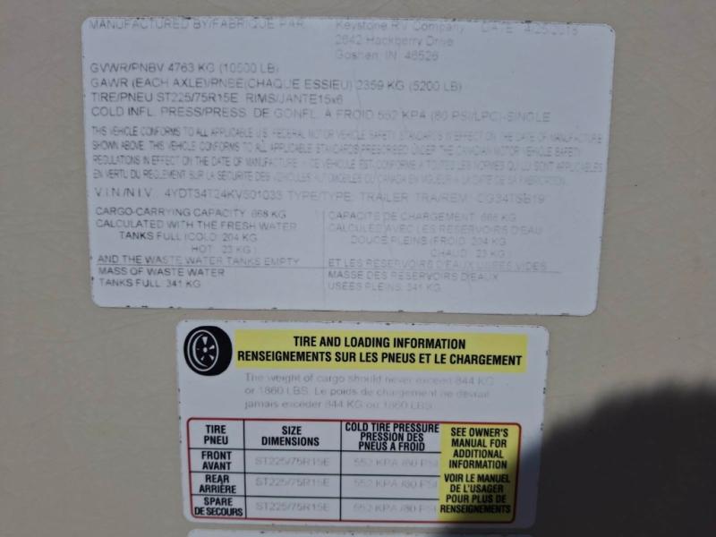 Used 2019 Keystone RV Cougar Half-Ton Series 34TSB Travel Trailer
