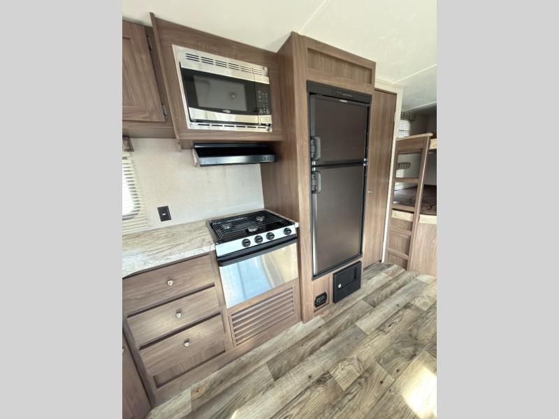 Every camping trip can be fun and enjoyable when you choose to camp with this single-slide Hideout travel trailer. Your family won't be lacking for space in this model. Within the slide is a U-shaped dinette where you can enjoy your meals or maybe play a card game or two, plus there is a tri-fold sofa that easily converts into additional sleeping space. Your kids will enjoy the rear double-size bunk beds, and mom and dad can retreat to the private bedroom at night. When the weather is nice outside, it is easier than ever to spend more time outdoors since this model features an outdoor kitchen. Now you can watch your kids play while you fix lunch or dinner.