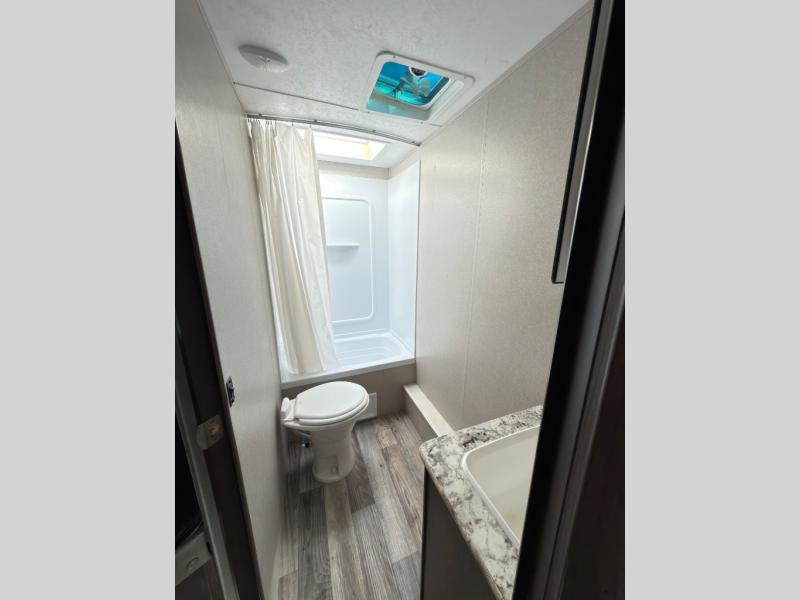 For any trip, whether near or far, you will want a Hideout fifth wheel, travel trailer, or destination trailer by Keystone RV. These models are lightweight which makes them easy to hook up and tow. Just load up your belongings and head out for a weekend away in your own Hideout retreat. A few key features inside of each model include: pleated shades in the living area, a high-rise faucet in the kitchen, and full-strutted storage under the master bed, and the exterior is just as indulgent with its powder-coated I-beam frame, exterior speakers, black radius window frames, hurricane straps reinforced structure, and exterior shower. Don't wait any longer to enjoy your own private hideout with the Keystone Hideout!