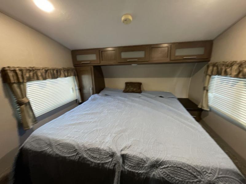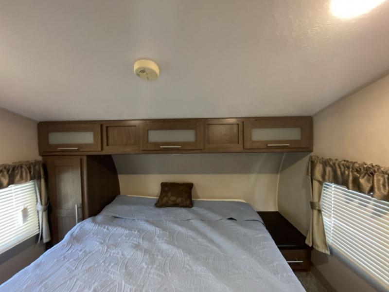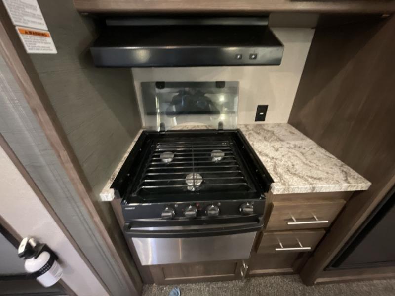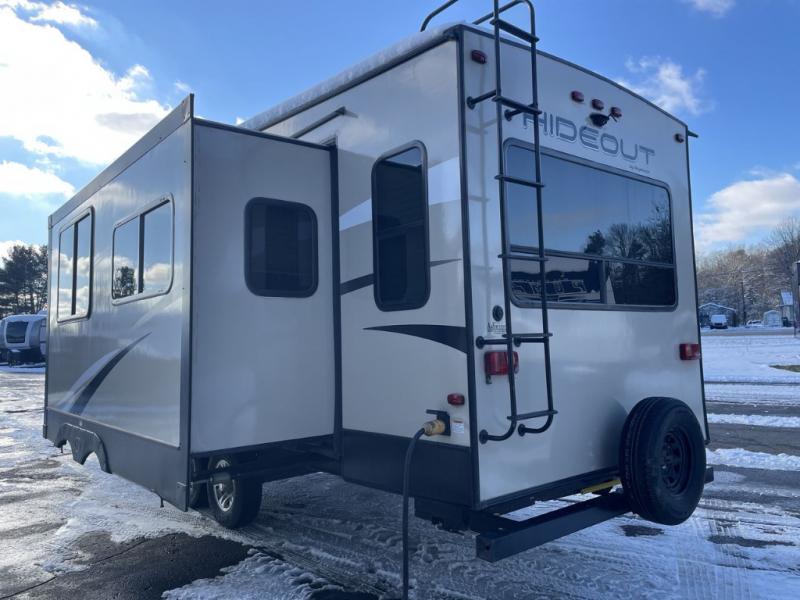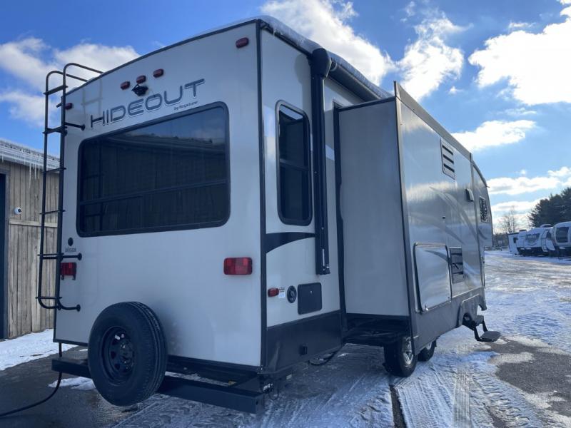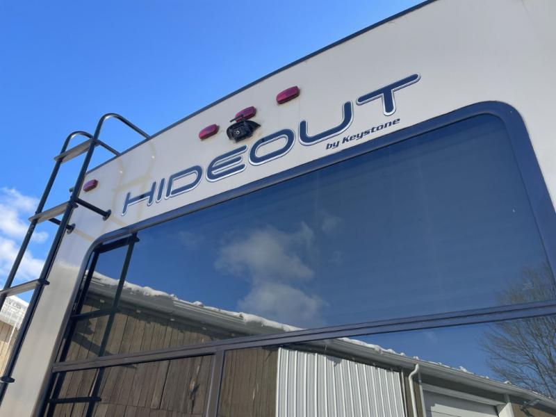 You are going to love the spaciousness of this Keystone Hideout fifth wheel! With two opposing slides in the rear living area, you will easily see the conveniences when you step inside. After you set up camp, take a break and relax in the theater seats as you take in the wonderful aromas coming from the three-burner range top in the kitchen, and once dinner is over, you will look forward to retreating to your own private bedroom where you can sleep peacefully and wake up refreshed for the adventures ahead.