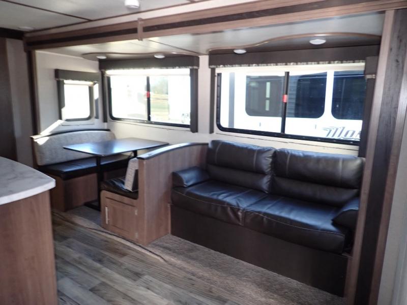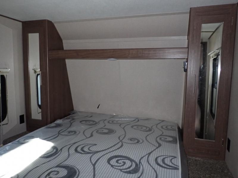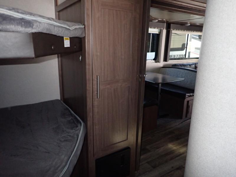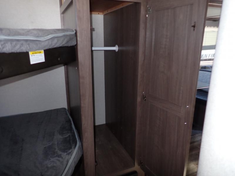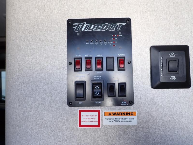 Don't let this extravagant and luxurious Hideout travel trailer pass you by! You won't believe the fantastic features that this unit provides, like a private bunkhouse suite that contains a set of double-size bunks and its very own half bathroom. The central living area is kept open and spacious because of two opposing slides which leave plenty of room for a kitchen island and booth dinette where you can cozy up or play a round of cards.