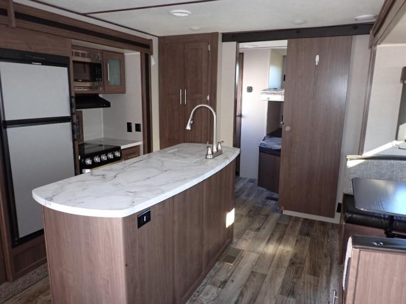 For any trip, whether near or far, you will want a Hideout fifth wheel, travel trailer, or destination trailer by Keystone RV. These models are lightweight which makes them easy to hook up and tow. Just load up your belongings and head out for a weekend away in your own Hideout retreat. A few key features inside of each model include: pleated shades in the living area, a high-rise faucet in the kitchen, and full-strutted storage under the master bed, and the exterior is just as indulgent with its powder-coated I-beam frame, exterior speakers, black radius window frames, hurricane straps reinforced structure, and exterior shower. Don't wait any longer to enjoy your own private hideout with the Keystone Hideout!