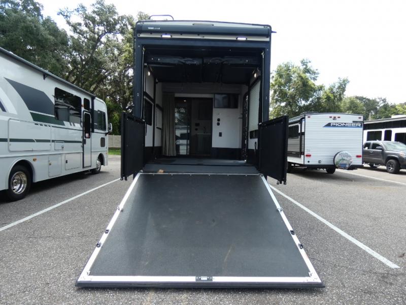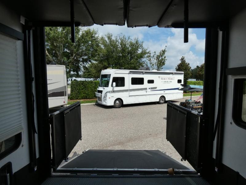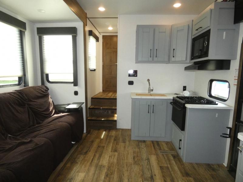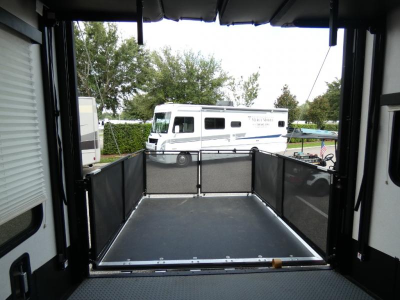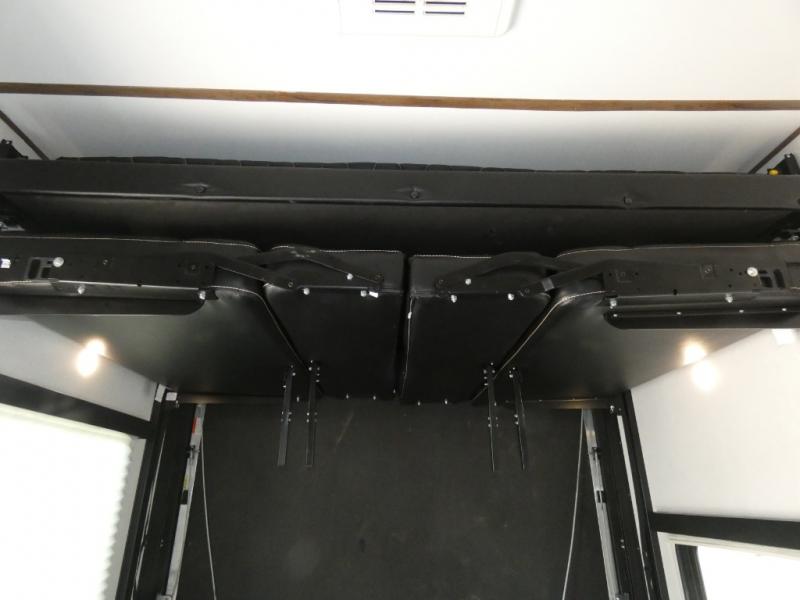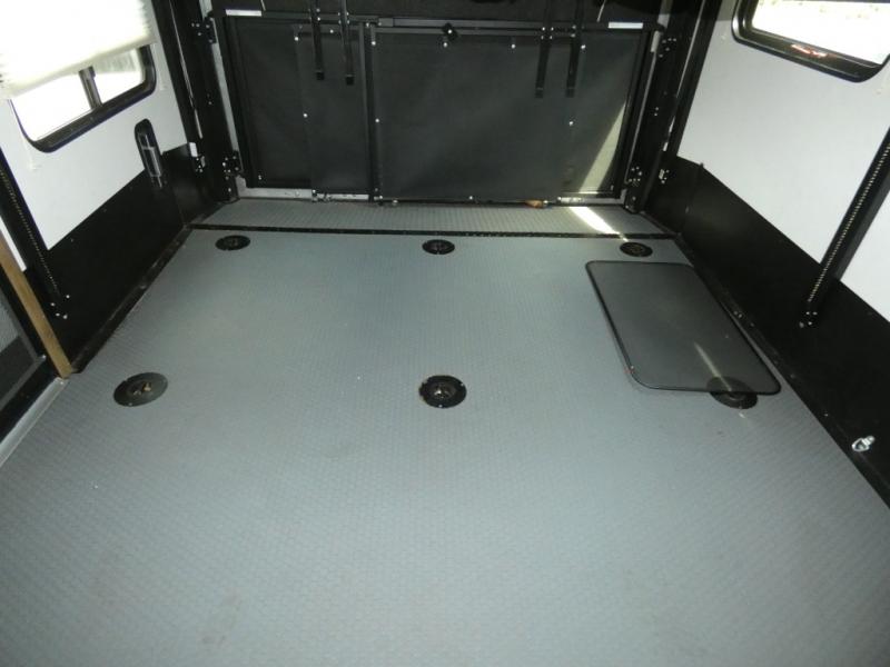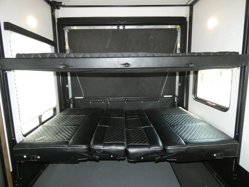 Imagine yourself and your family packing up your toys and heading to the campground of your choice in complete confidence and style with this toy hauler. With 10' of separate garage space and an 8' rear ramp door, loading and unloading won't take much time at all. Once the toys are unloaded, you can setup the dual opposing sofas and/or the top queen-size bed for more living and sleeping space whenever you have extra guests traveling along with you. The separate kitchen and living area provides some privacy from the cargo area, offers an L-shaped counter with a stainless steel single bowl sink that makes cleaning up after dinner a breeze, and you will find a double entry bathroom and master bedroom to retreat to after a hard day on the trails!