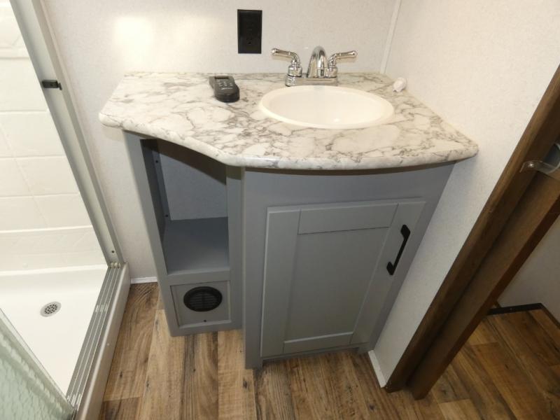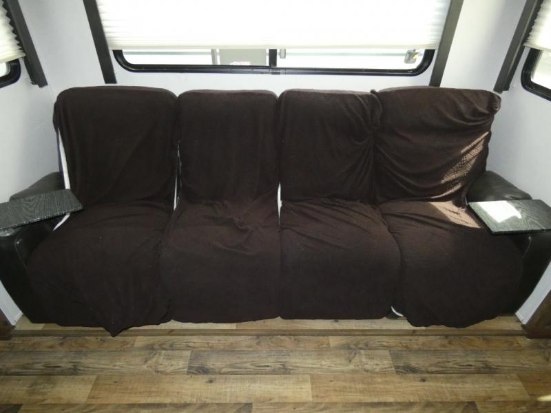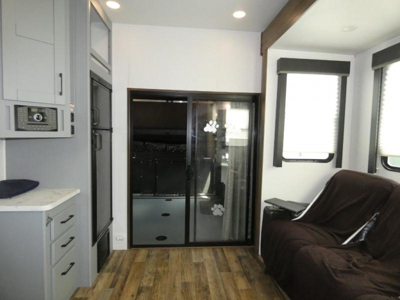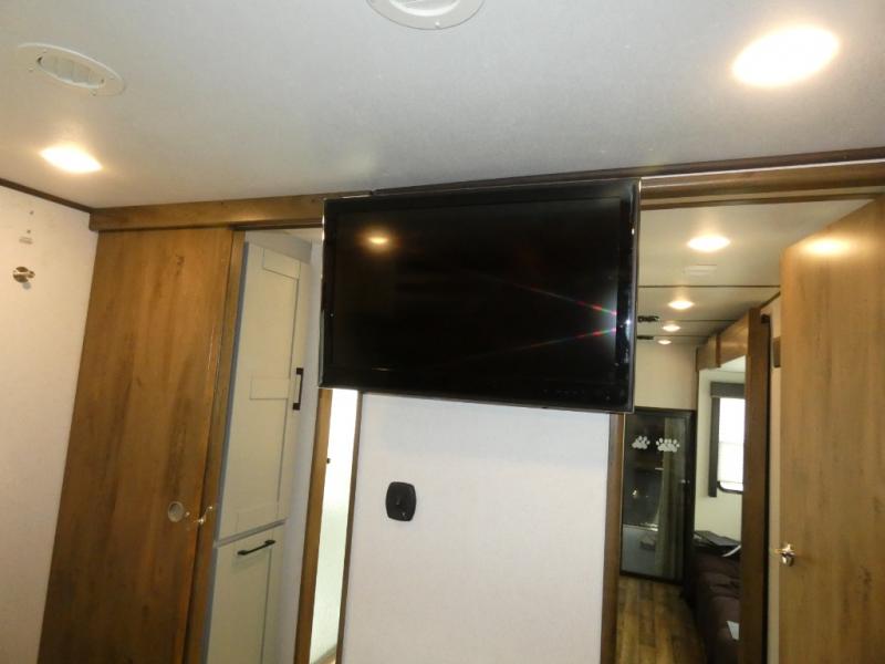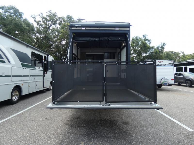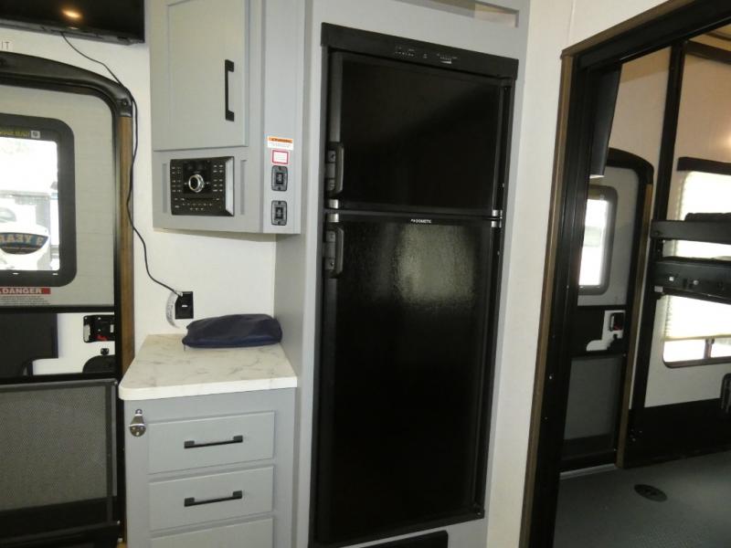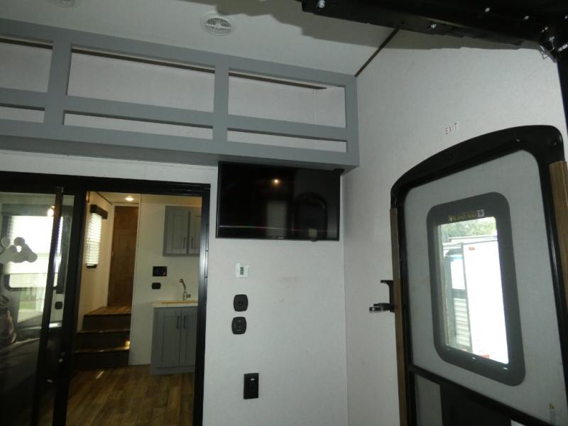Imagine yourself and your family packing up your toys and heading to the campground of your choice in complete confidence and style with this toy hauler. With 10' of separate garage space and an 8' rear ramp door, loading and unloading won't take much time at all. Once the toys are unloaded, you can setup the dual opposing sofas and/or the top queen-size bed for more living and sleeping space whenever you have extra guests traveling along with you. The separate kitchen and living area provides some privacy from the cargo area, offers an L-shaped counter with a stainless steel single bowl sink that makes cleaning up after dinner a breeze, and you will find a double entry bathroom and master bedroom to retreat to after a hard day on the trails!