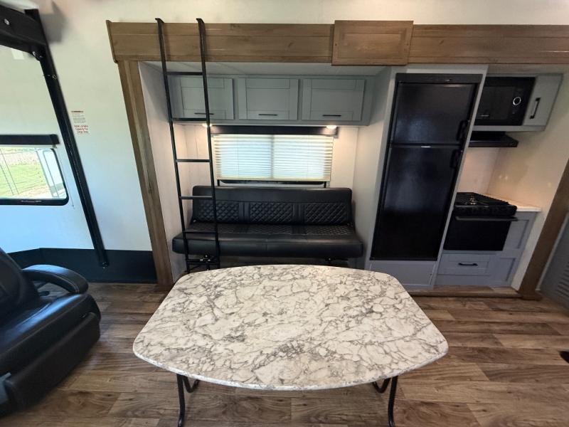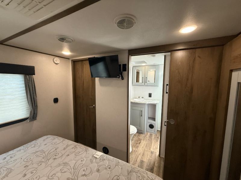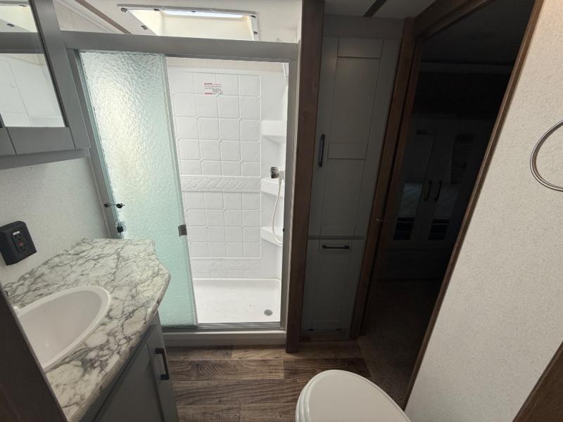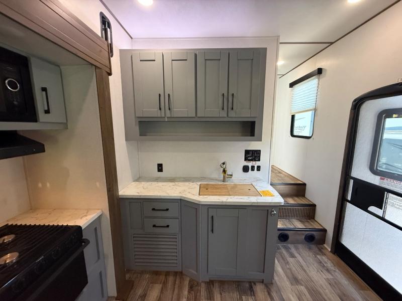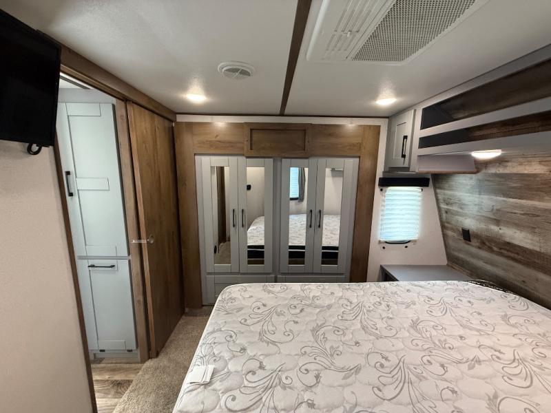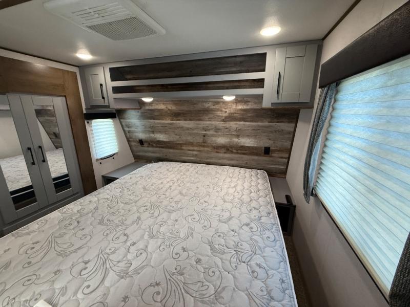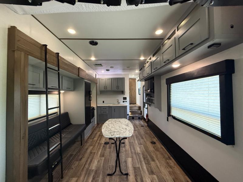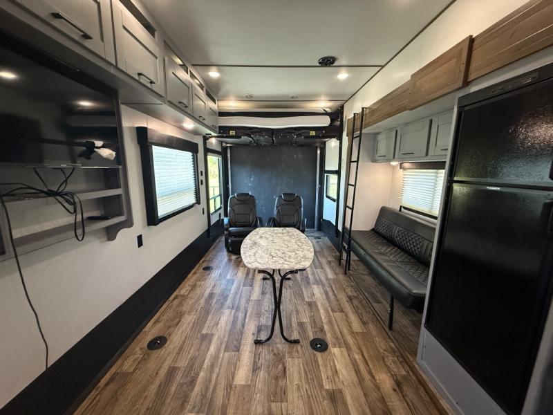 Imagine an open concept living and kitchen area, plus extra sleeping space on the dual opposing sofas and top queen bed at your favorite RV park. You can retire to your master suite with a residential queen bed and plenty of storage for all your clothing and gear, plus enjoy easy access to the full bathroom. The kids will have their own space to eat snacks, plan out the next trail ride, and sleep as well. With 19' 3" of cargo space you can carry all your toys too! It's time for fun on the trails!