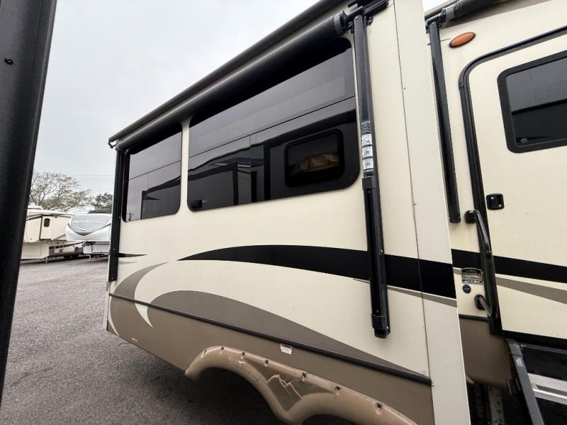 When you are ready to head out in comfort to see the countryside, take this Montana with you. This fifth wheel offers a rear living and kitchen area with dual slide outs for more interior floor space, plus seating for the whole gang including theater seats with power recliners. You are sure to enjoy the HDTV and fireplace on those inside camping days. The kitchen offers the chef a center island for preparing food, an 18 cu. ft. residential refrigerator, a convection microwave, a coffee station for the coffee lover in the family, and a pantry for your dry goods, plus more. You will also find plenty of storage throughout for all your things. Outside there are two awnings providing an outdoor living space, and you will find additional storage. Take a look, you will be pleased you did.