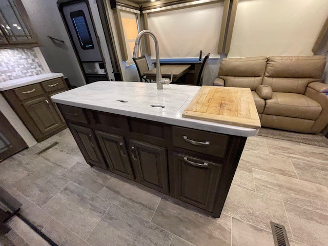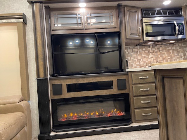 When you are ready to head out in comfort to see the countryside, take this Montana with you. This fifth wheel offers a rear living and kitchen area with dual slide outs for more interior floor space, plus seating for the whole gang including theater seats with power recliners. You are sure to enjoy the HDTV and fireplace on those inside camping days. The kitchen offers the chef a center island for preparing food, an 18 cu. ft. residential refrigerator, a convection microwave, a coffee station for the coffee lover in the family, and a pantry for your dry goods, plus more. You will also find plenty of storage throughout for all your things. Outside there are two awnings providing an outdoor living space, and you will find additional storage. Take a look, you will be pleased you did.