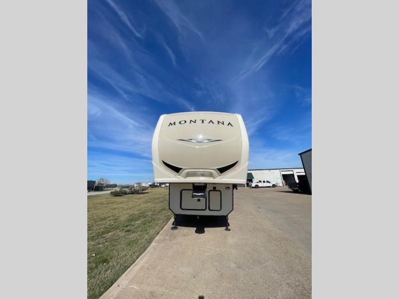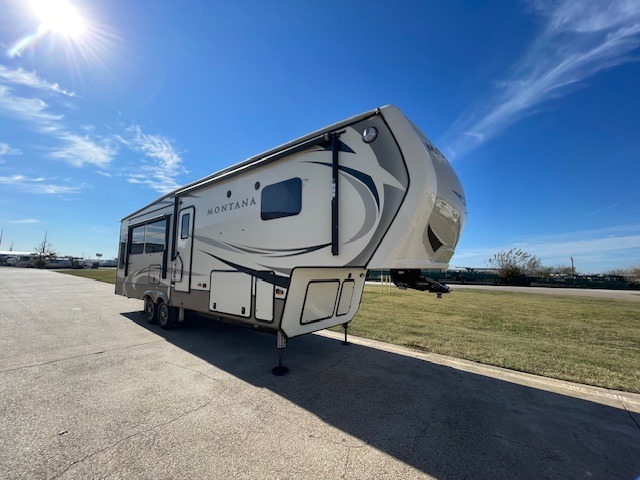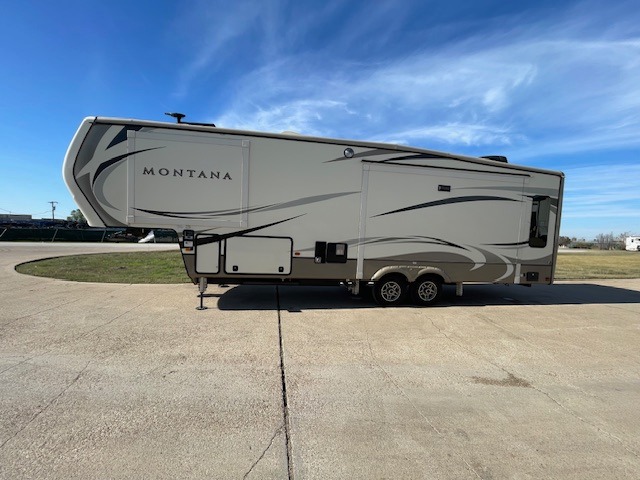 When packing for your next trip in a Keystone Montana luxury fifth wheel you will appreciate the enormous drop frame pass-through storage compartment, the MORyde "Step Above" entry steps with strut assist, and the LED light package including "super-bright" taillights with backup marker and off-door scare light. The Montana 20th Anniversary Edition adds exclusive features such as the Key TV satellite prep, LED accent lighting, Tru-fit slide construction, and Easy Sweep resilient flooring. You will love the in-floor heating ducts, which allow for more airflow to be distributed evenly for optimal comfort. the LED motion sensor light in the pass-through compartment and convenience center, plus the Four Season Living package allowing you to travel whenever you like. It's time to find the luxury fifth wheel you can enjoy for years to come, choose a Montana by Keystone today!