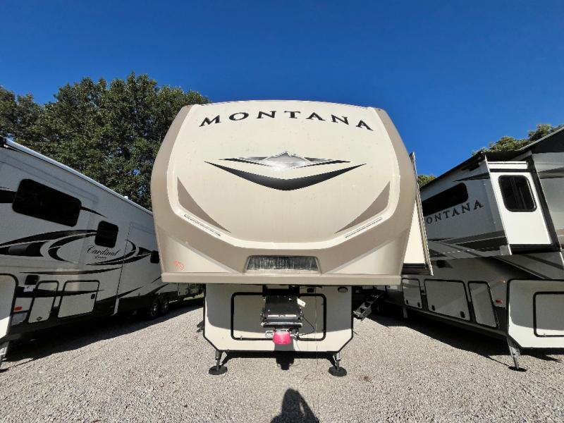 When packing for your next trip in a Keystone Montana luxury fifth wheel you will appreciate the enormous drop frame pass-through storage compartment, the MORyde "Step Above" entry steps with strut assist, and the LED light package including "super-bright" taillights with backup marker and off-door scare light. The Montana 20th Anniversary Edition adds exclusive features such as the Key TV satellite prep, LED accent lighting, Tru-fit slide construction, and Easy Sweep resilient flooring. You will love the in-floor heating ducts, which allow for more airflow to be distributed evenly for optimal comfort. the LED motion sensor light in the pass-through compartment and convenience center, plus the Four Season Living package allowing you to travel whenever you like. It's time to find the luxury fifth wheel you can enjoy for years to come, choose a Montana by Keystone today!