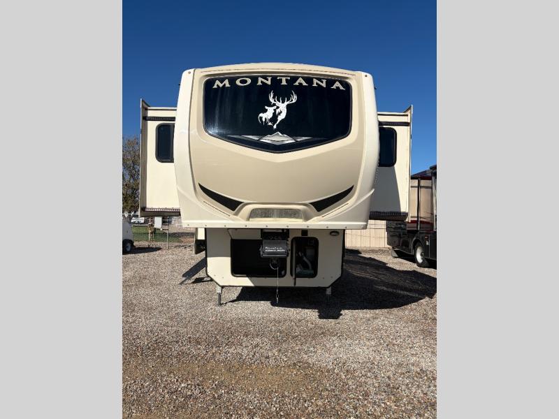 When packing for your next trip in a Keystone Montana luxury fifth wheel you will appreciate the enormous drop frame pass-through storage compartment, MORyde "Step Above" entry steps with strut, and flush mounted LED interior lights to name a few features. Inside you will find an iRelax high density mattress for a good night's sleep, plus a Furrion RV Chef collection oven with auto-ignite and a convection/microwave oven for making your favorite meals. It's time to find the luxury fifth wheel you can enjoy for years to come, choose a Montana by Keystone today!